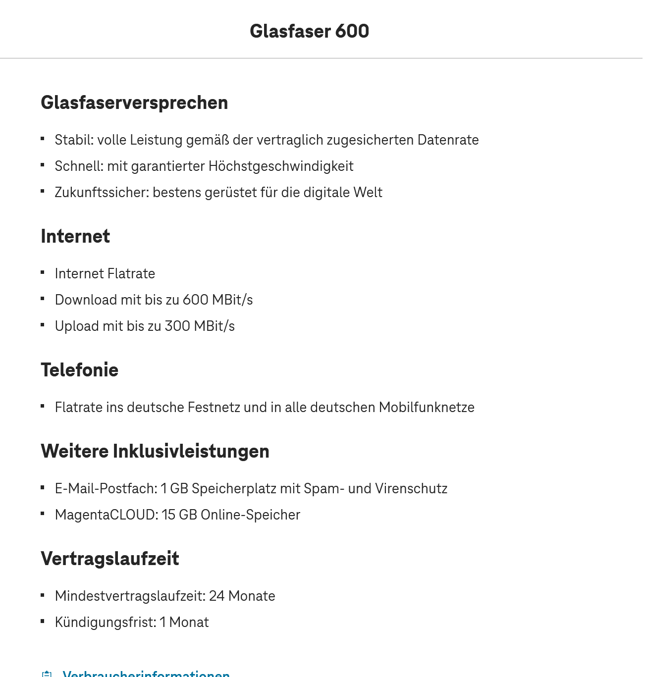 Glasfaser 150/300/600/1000 mit MagentaTV Smart. Enthalten sind immer :