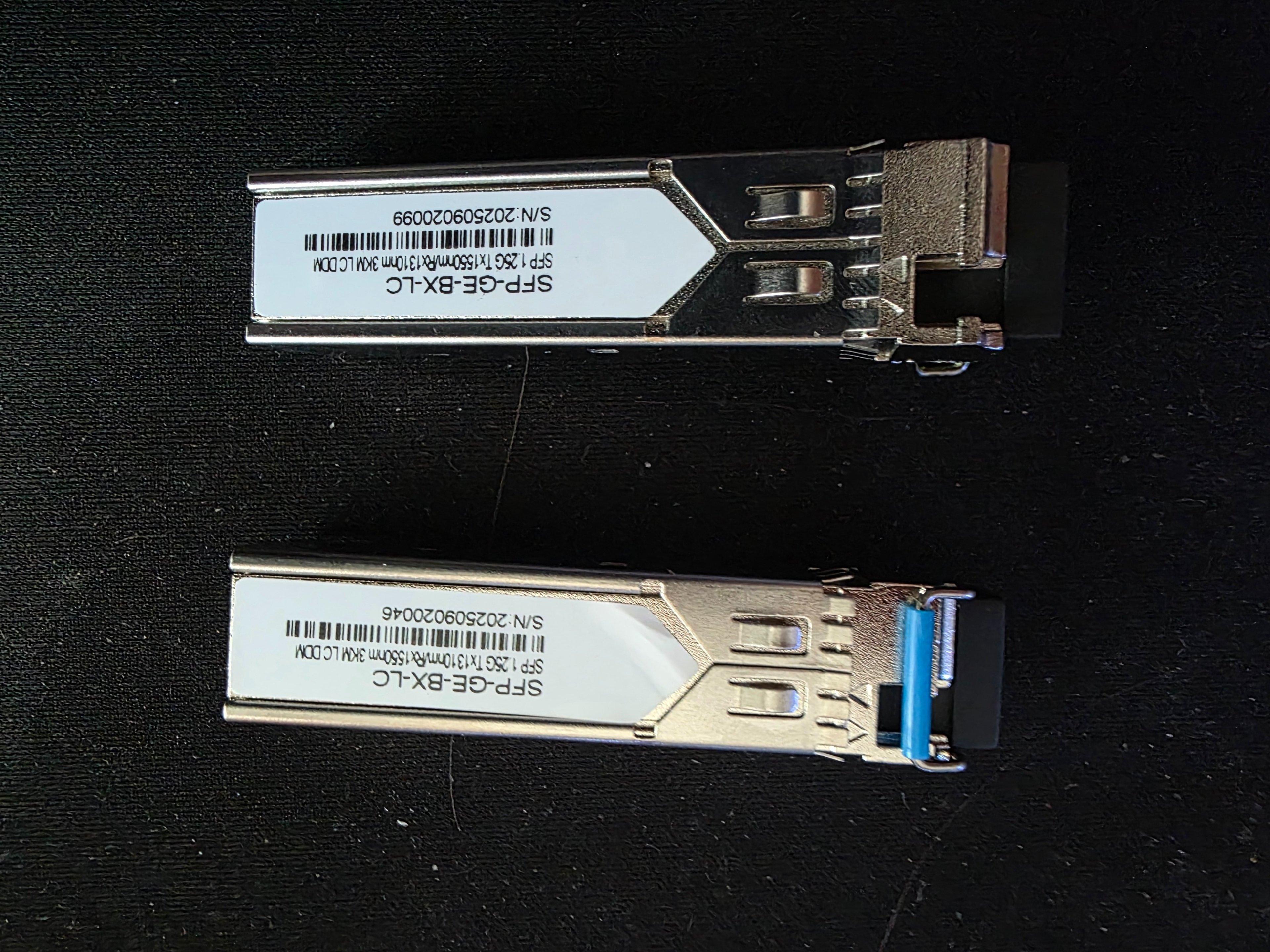 Ich habe den 1 * Gigabit SFP Medienkonverter 2 SFP auf 4 RJ45 10/100/1000M Glasfaserschalter mit 3KM LC (großen Medienkonverter) ausgepackt und wollte die Module einstecken. Jetzt sehe ich aber bei diesen Modulen, dass nur eine Steckerverbindung möglich ist auf der TX Seite (siehe Bild). Nun bekomme ich natürlich damit keine Verbindung mit einem kleinen Medienkonverter hin, da ich ja nur mit Senden verbinden kann.