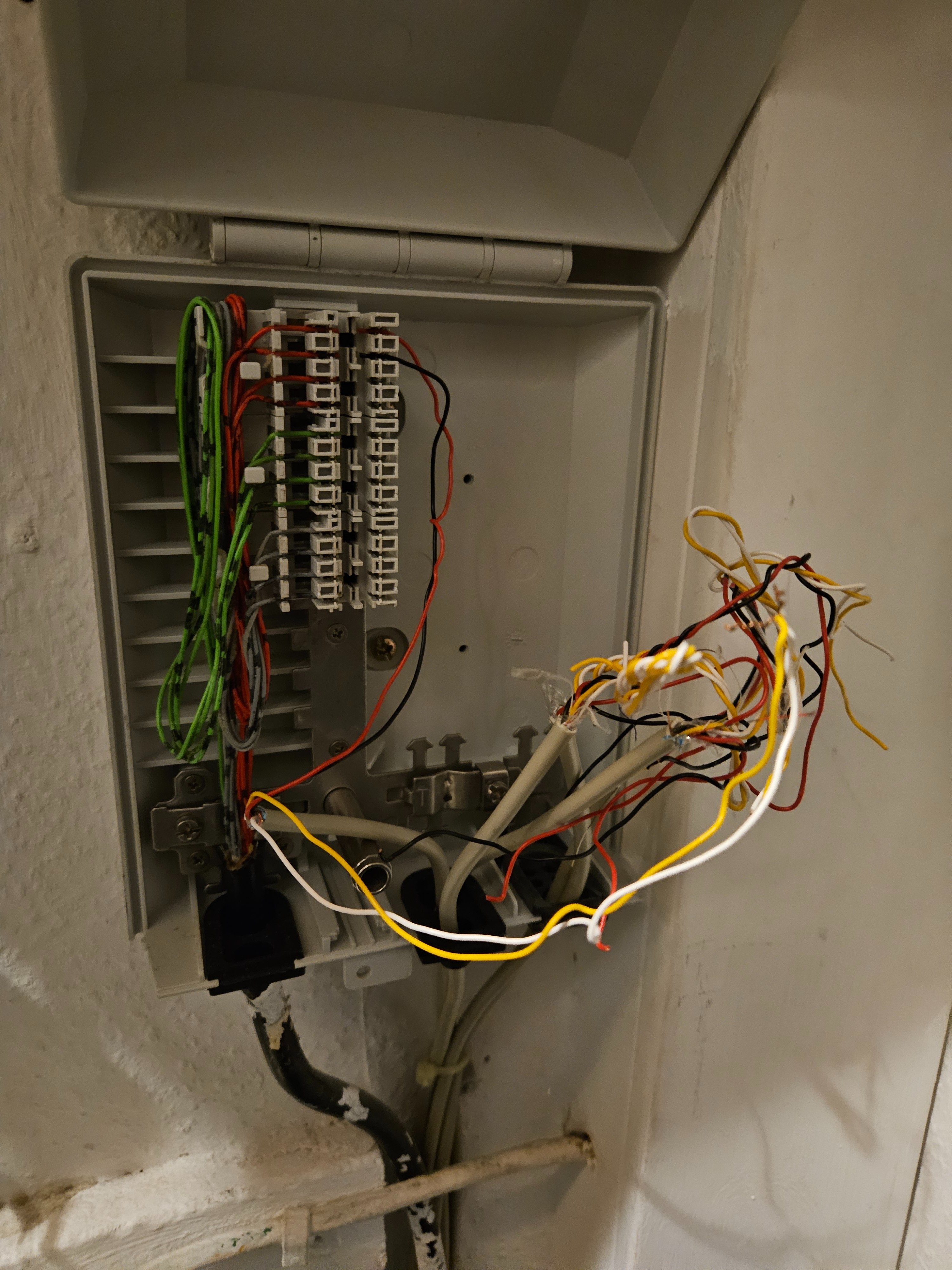 Ich habe mal zwei Bilder angehängt. Einmal den Verteilerkasten im Wirtschaftsraum und die Telefonbuchse auf dem Dachboden.