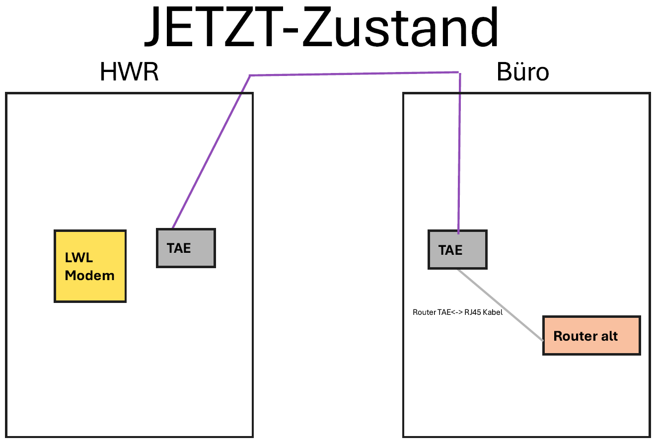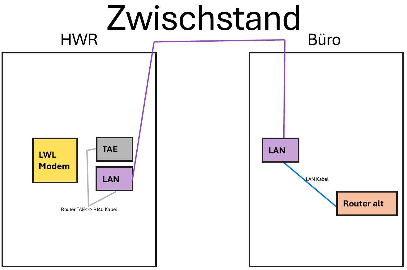 Bisher war ja der Plan ONT -> Lila Kabel -> Router Büro