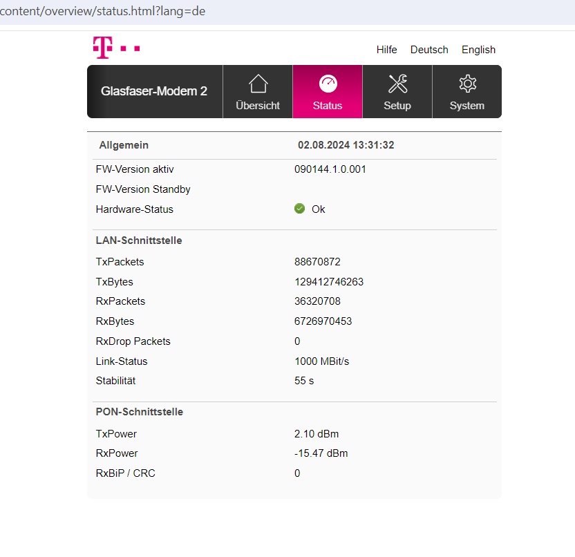 Das Probleme mit der Aktivierung des Modems gab, hat die Telekom am Samstag-Abend das Modem manuell aktiviert. Das Modem hat auch die grüne LED und die Telekom hat mir gerade eben auch versichert, dass sie von Ihnen aus gesehen keine Problem haben. Das Glasfaser + Modem funktioniert. Leider gibt es aber immer noch Probleme mit der Verbindung zum Internet.