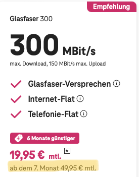 - Glasfaser 300 ~ 49,95 Euro