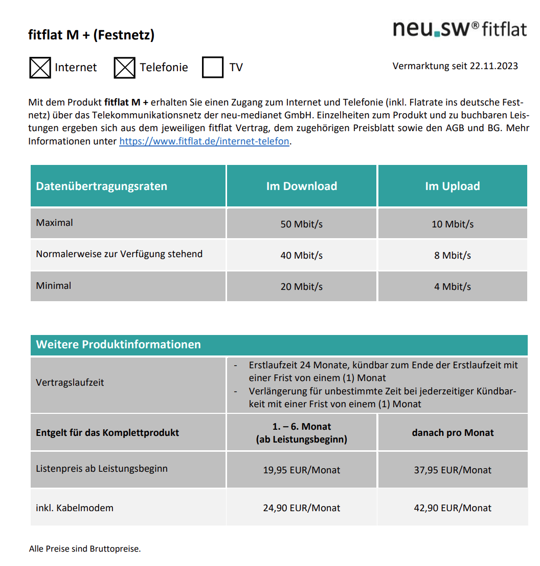 Wie meinst du das, du findest 40-50€ für 25/5 Mbit/s fair? Im Großteil der Republik gibt's die vierfache Datenrate für 25€ im Monat und das lässt sich mit nem Router nutzen, der gebraucht 15-40€ kostet. Mieten muss man da überhaupt nicht.Müritzer schrieb:Mir reicht das eigentlich aus, so einen Vertrag gibt es ja nicht mehr neu.