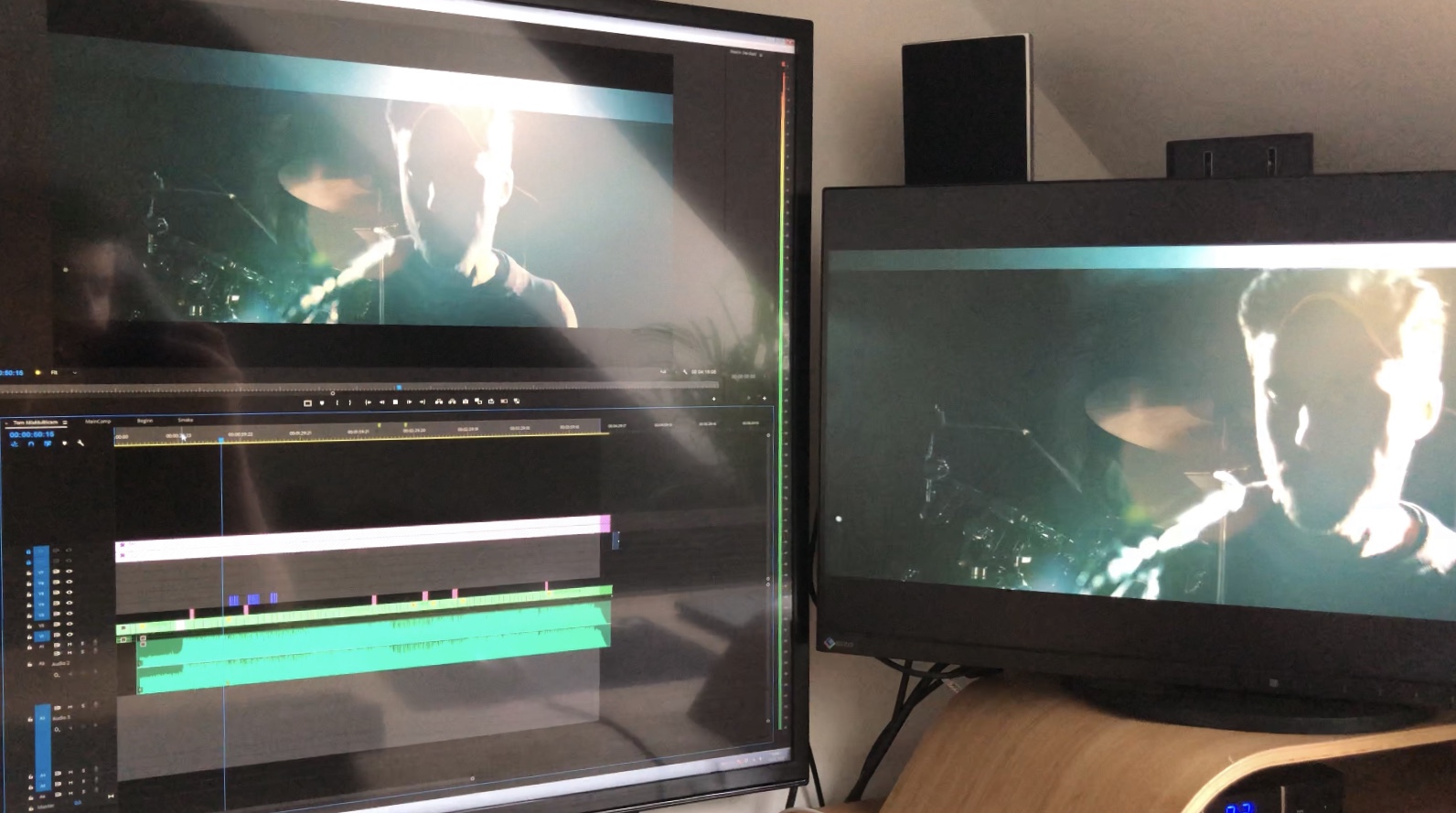 Beim Abspielen von sämtlichen Videomaterial, sei es Schneiden in Schnittprogrammen, Videos auf Youtube, oder direktes Abspielen von Videodateien, zeigt sich eine Bruchkante (Siehe Foto). Die Bruchkante wandert immer mal wieder von dem 1/3 des Monitors in die Mitte. Die Bruchkante ist sowohl auf meinem Fernseher (2. Monitor) und auf meinem Hauptmonitor zu sehen. Wenn ich das Material im Schnitt synchron auf beiden Monitoren anzeigen lasse sehe ich auf beiden eine Bruchkante, die aber nicht genau identisch ist, aber sehr ähnlich.