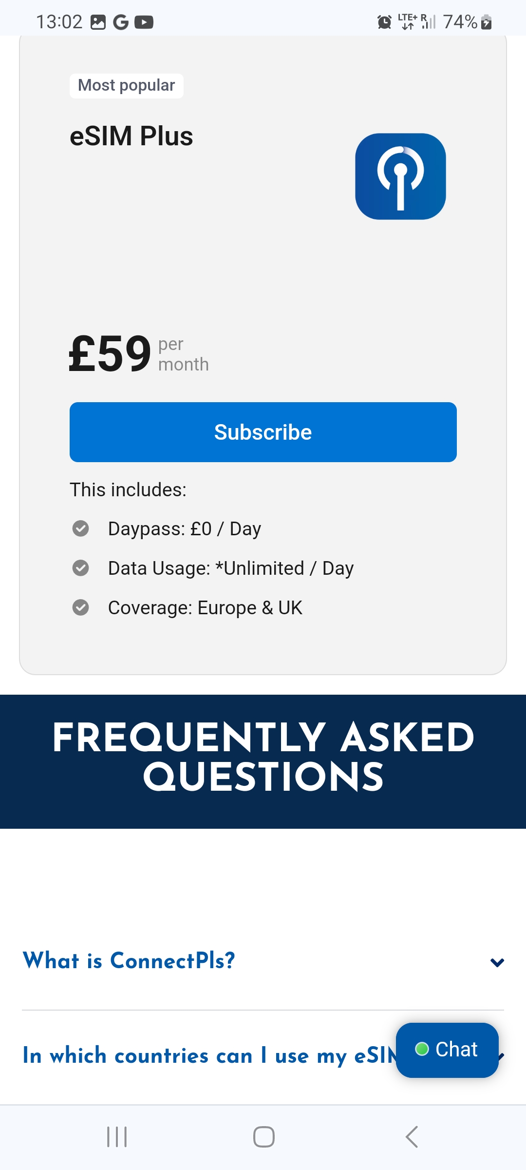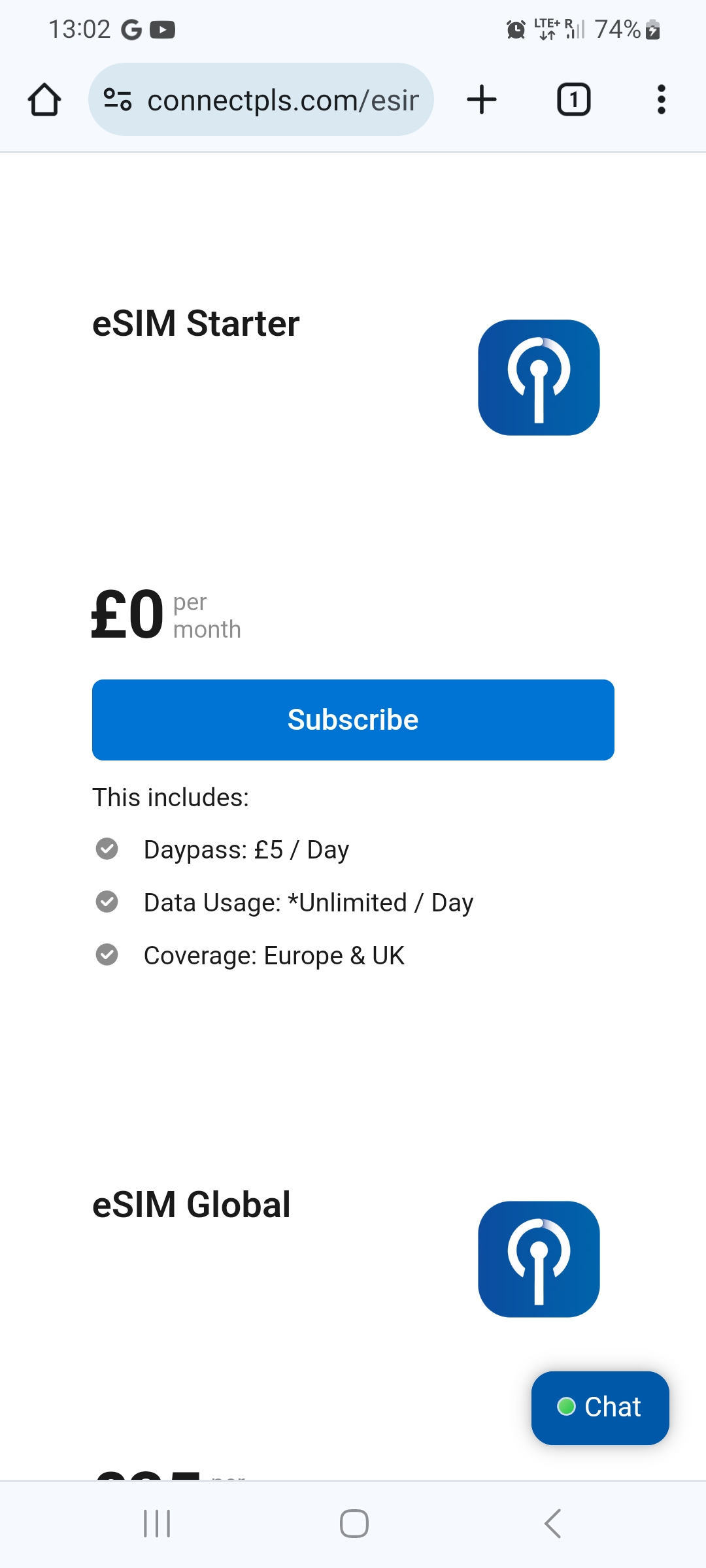 Zu guter Letzt gibt es von etravelsim für viele Länder ebenfalls eine unlimitierte esim, die ich ebenfalls nicht getestet habe: