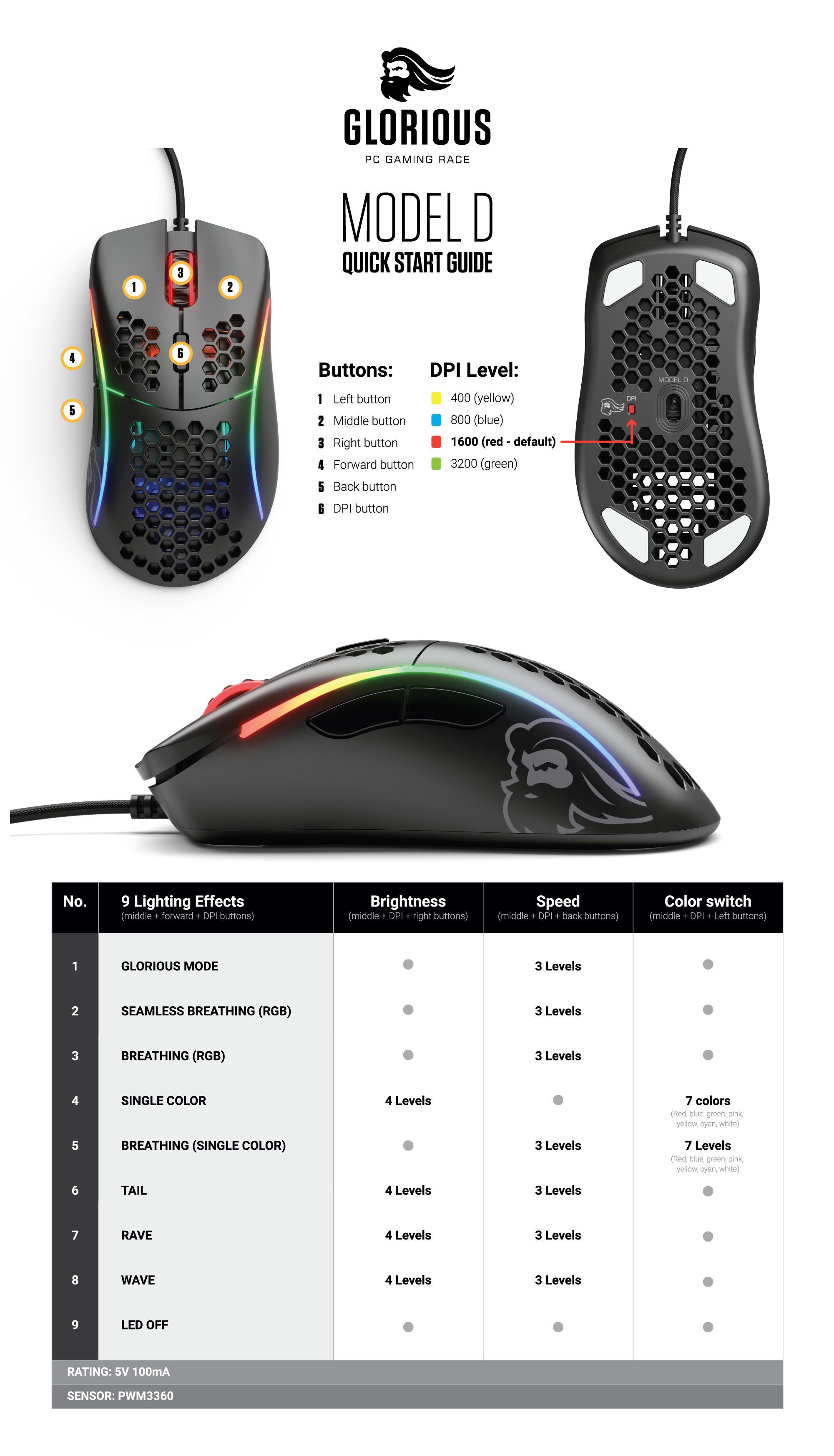Wie Glorious auch in der Beschreibung betont ist die Software komplett optional und wichtige Dinge wie DPI Einstellungen, wenn man mit den vorinstallierten DPI Zahlen vorlieb nimmt, sowie die RGB Effekte lassen sich „offline“ an der Maus steuern.