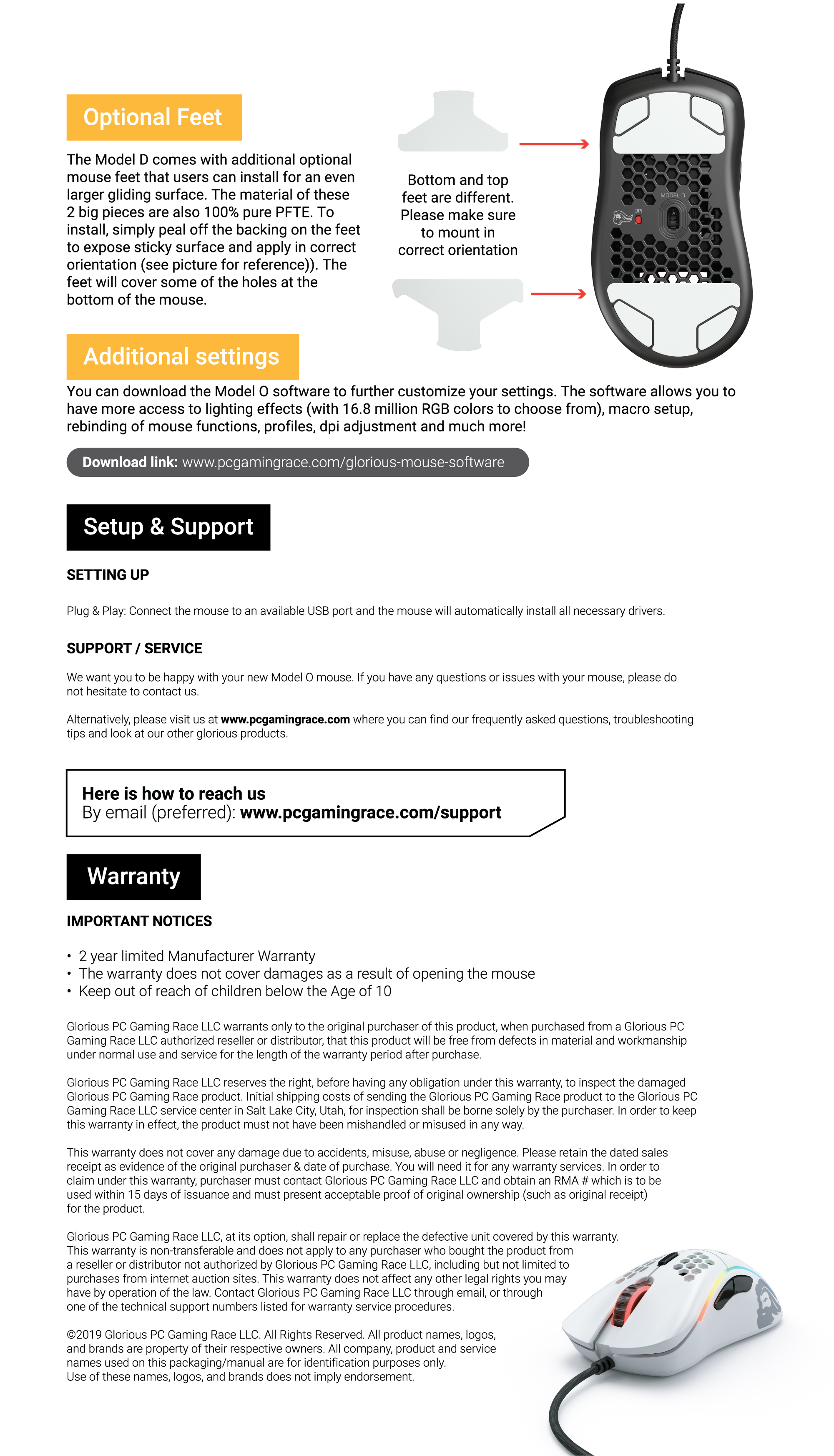 Mir gefällt die Glorious „Model D-“ insgesamt sehr gut. Die Präsentation des Produkts im kleinen, absolut ausreichenden, Karton sowie die des Herstellers finde ich gelungen und witzig. Außerdem bemüht sich der Hersteller offenbar darum Produkte zu konzipieren die die Anwender auch wirklich wollen und macht sich dazu entsprechende Gedanken. Im Kontrast dazu stehen für mich Firmen die eben eine „Gaming“ Maus produzieren, weil sie ihr Lineup komplettieren müssen und ein entsprechendes Stück vom Kuchen wollen.