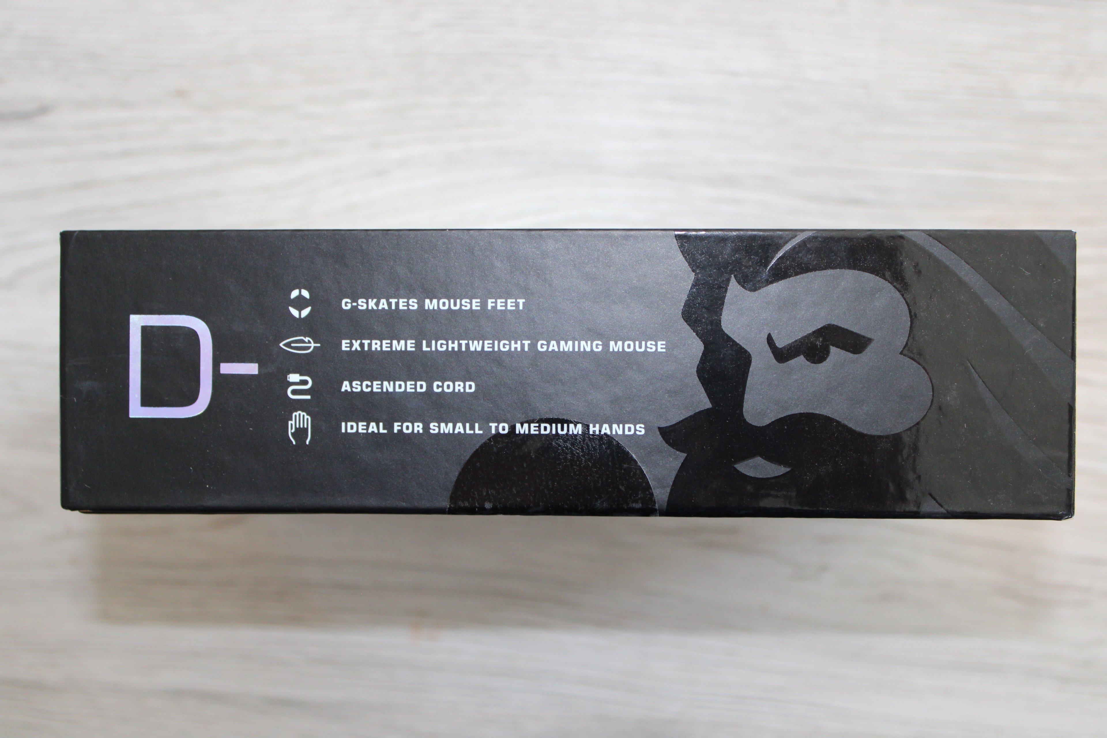 Das Päckchen von Caseking enthält eine kleine handliche Packung die, bis auf eine orange Seite, in schwarz und gräulicher Farbe gehalten ist und mit glänzender „Model -D“ Aufschrift und teilweiser Zeichnung der Maus auf der Vorderseite den neuen Besitzer zu überzeugen versucht, aber seht selbst:
