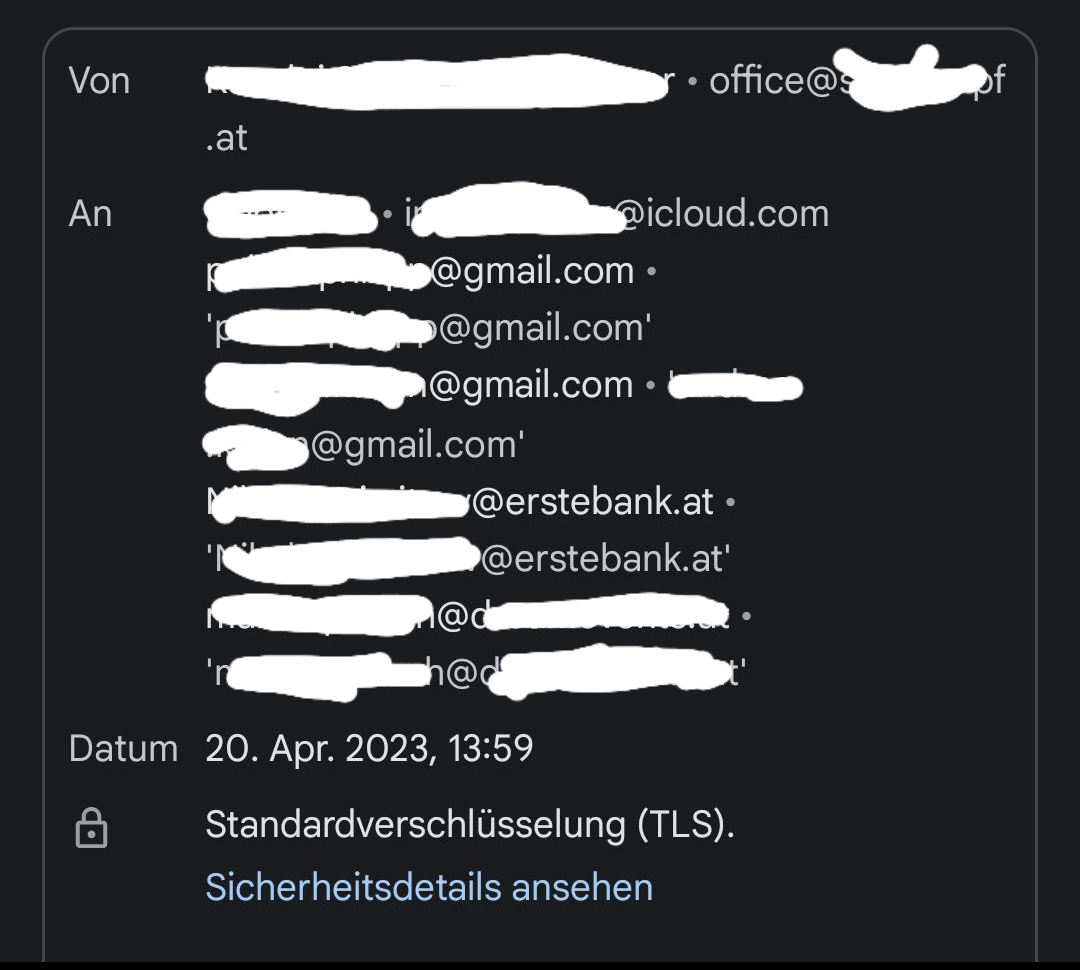 Ich klicke auf "Allen antworten", schreibe meinen Inhalt, drücke auf den Senden-Button und bei jeder einzelnen Adresse (weil ich sie testweise rauslösche) kommt die Fehlermeldung im Betreff (im übrigen sogar bei meiner eigene Gmail-Adresse auf der ich das Mail ja gerade erst empfangen habe!).