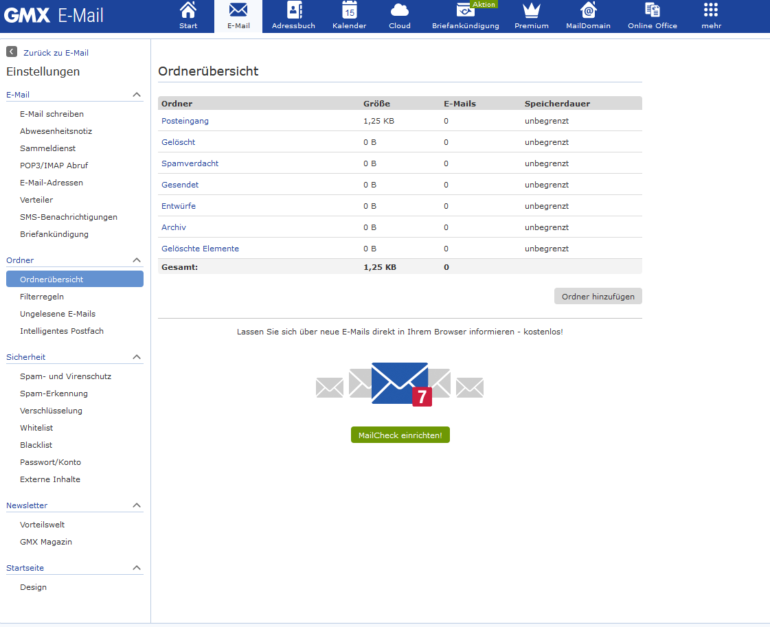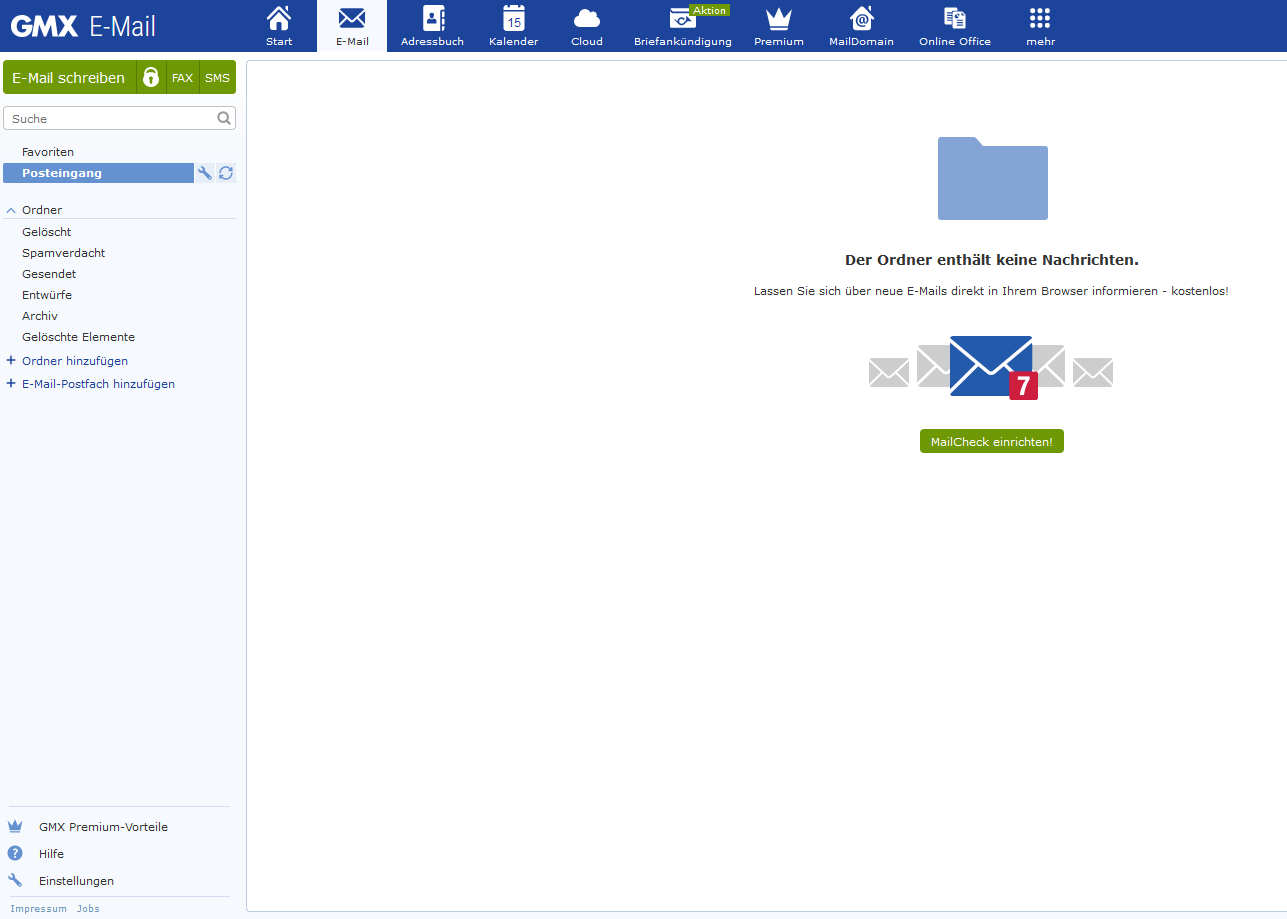 Aber die E-Mais vom 30.7.2021 bis heute sind noch GMX Online E-Mail Postfach.