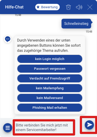 1) Es ist mir nicht gelungen, dem Chat-Bot mein Problem verständlich zu machen.
