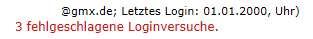 bin heute von den üblichen Weihnachtsbesuchen zurück gekommen und wollte mal wieder Mails checken. Beim Login in mein GMX Postfach standen oben 23 fehlgeschlagene Login Versuche seit dem letzten mal. So wie's aussieht ist aber niemand ins Postfach gekommen (der letzte erfolgreiche Login Versuch war Datum/Uhrzeit nach zu urteilen auf jeden Fall von mir). Hat jemand von Euch dieser Tage auch sowas erlebt? Oder war das dann wohl bei mir ein Einzelfall?