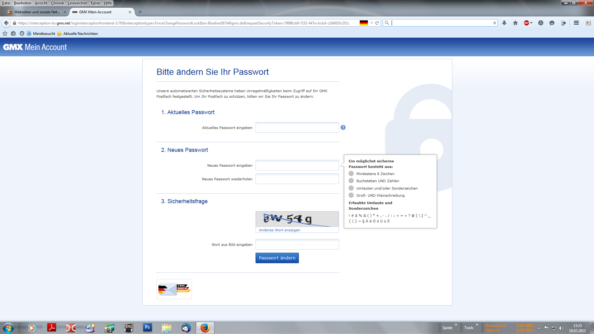 Danach soll ich mein altes Passwort eingeben und danach ein neues erstellen, irgendwie kommt mir das spanisch vor, was meint ihr, wärde ich da nicht vorher von GMX angeschrieben worden?