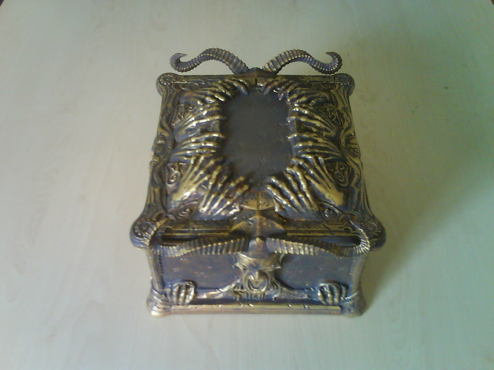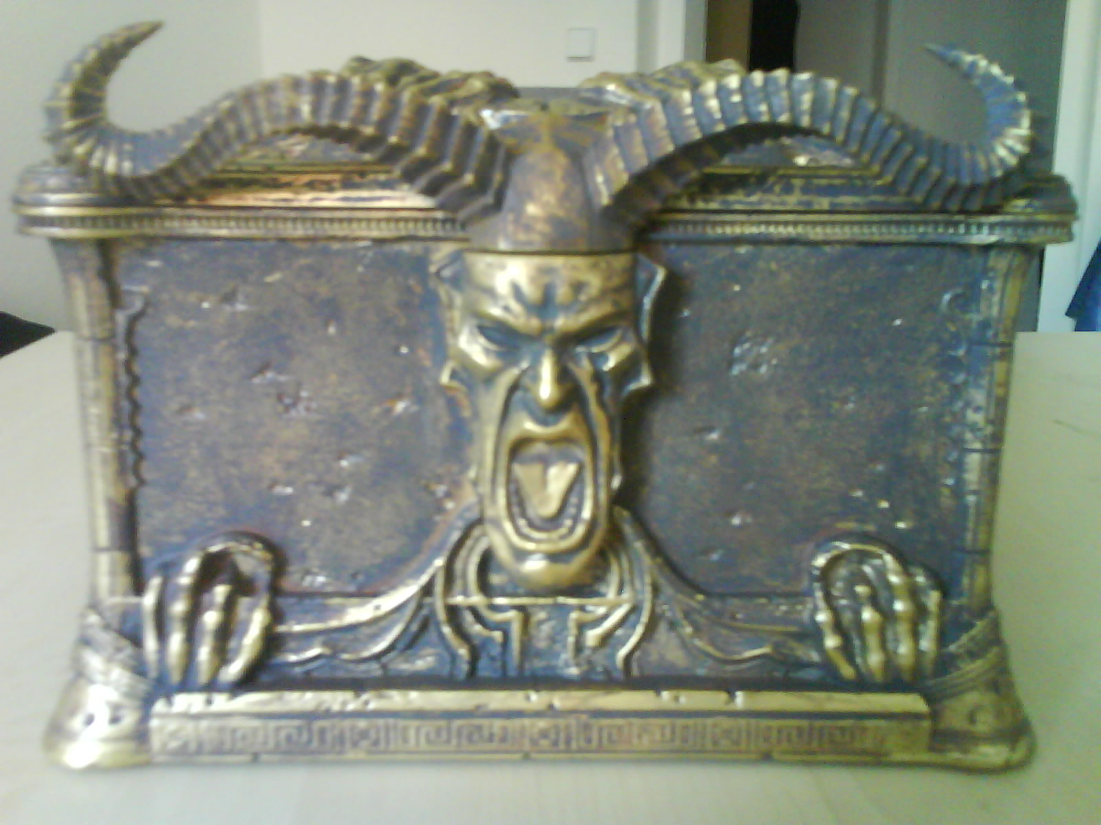 Sieht tatsächlich sehr edel aus, Material ist aber natürlich Kunststoff (wiegt leer fast nix). Innen mit schwarzem "Samt" ausgelegt, 2 Etagen mit doppeltem Boden für Spiele + Extras.