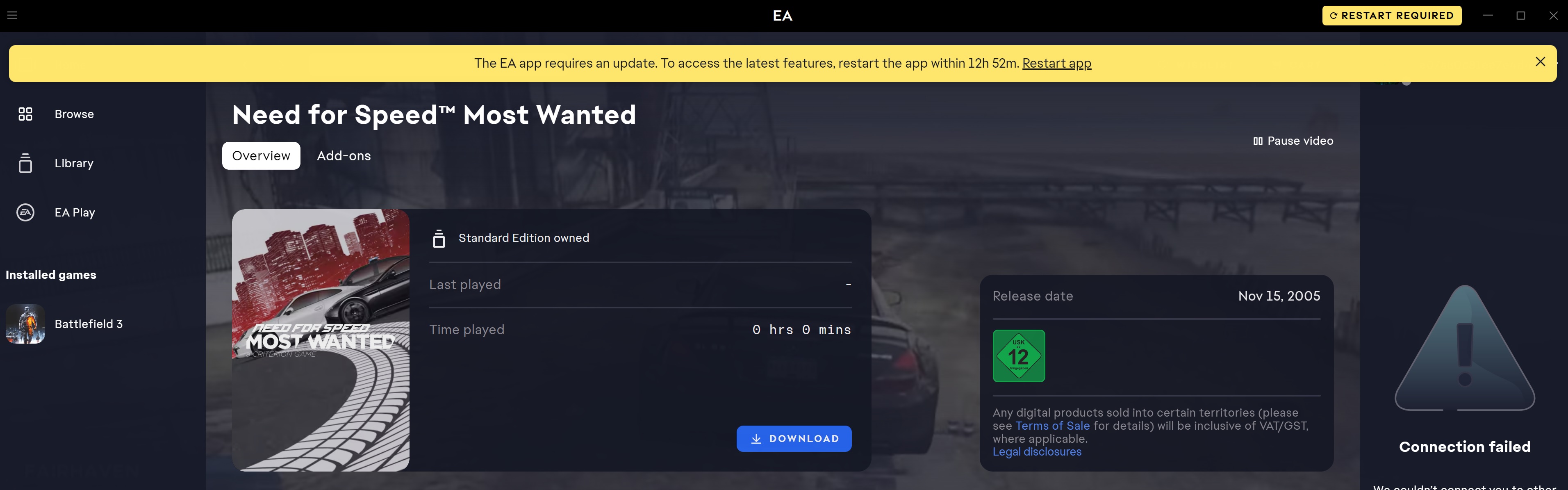 Durchgespielt hatte ich davor schon die CD Version (daher auch ohne Spielzeit in meiner EA App), mir es damals aber trotzdem noch kostenlos digital besorgt, da es für mich zu den besten 3 NFS aller Zeiten gehört.