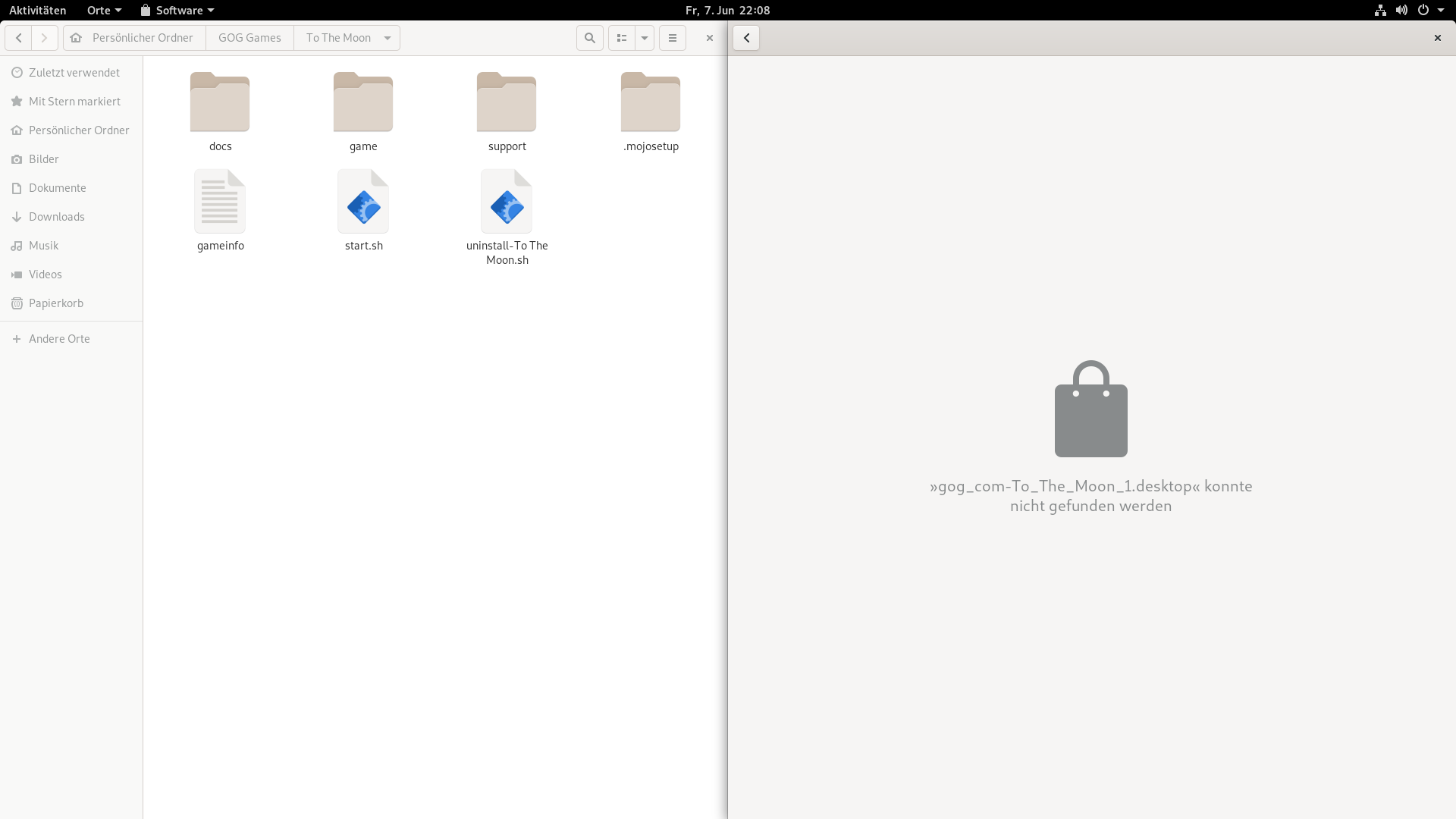 habe mir gerade auf Gog "to the Moon" gekauft und wollte es starten. Habe dazu diese Befehle benutz: