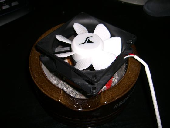 Habe dann erstmal wieder den Standart-80cm Lüfter meines Centurion-Case eingebaut und lasse den nun auf 5V laufen.