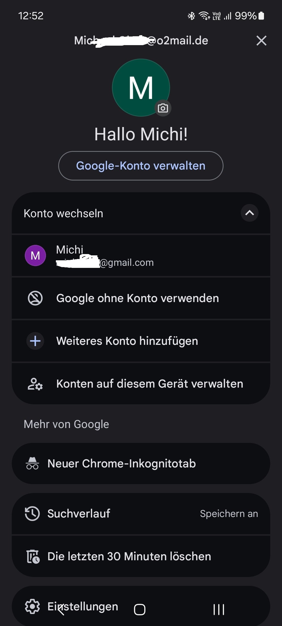 Mein Google Account, den ich schon viele Jahre habe, hat den Namen meiner Emailadresse bei o2 (ich habe noch einen zweiten Account mit einer gmail-Adresse).