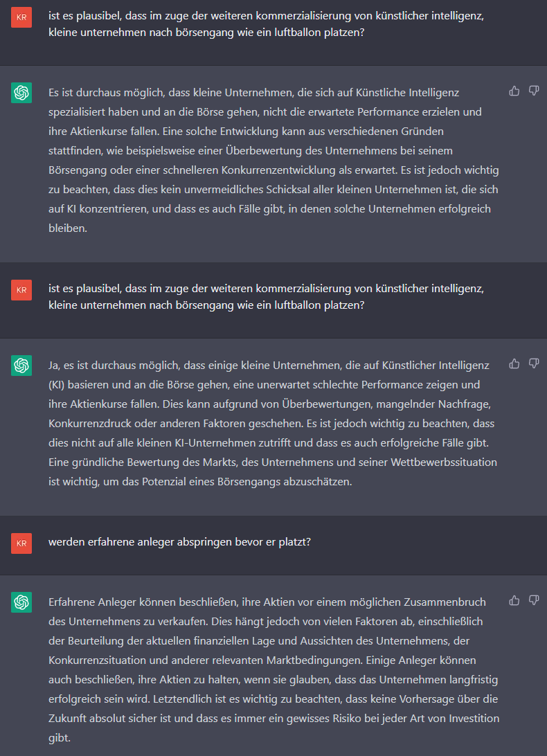 Ja gut, der Höhenflug jedes kleinen KI-Startup Trittbrettfahrers.Schinken42 schrieb:Wie bei der DotCom Blase wird auch hier ein Hype geschürt.