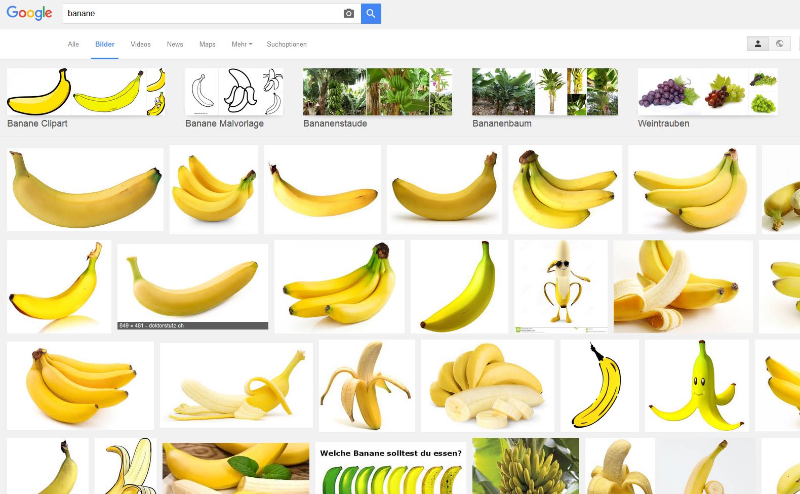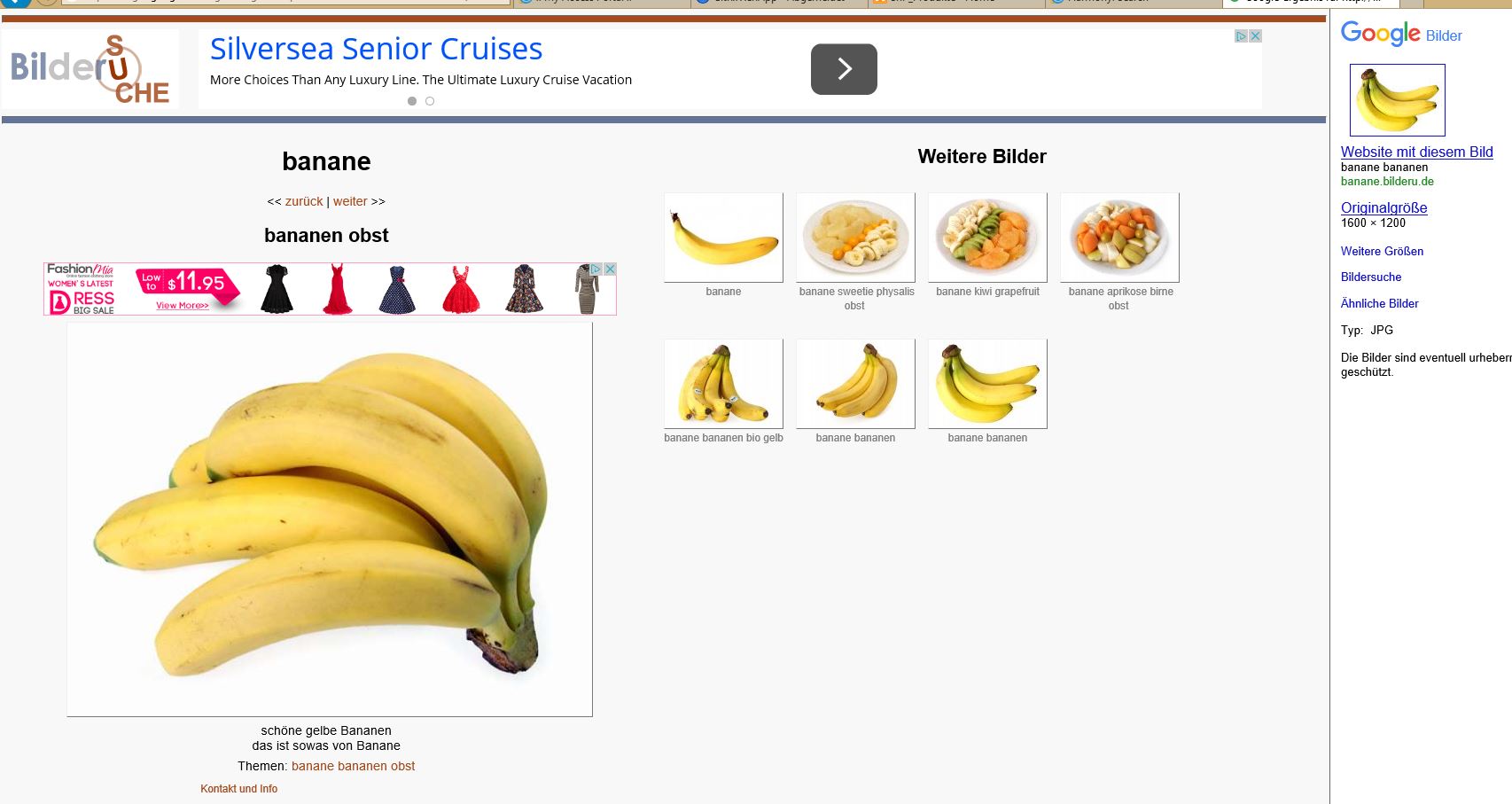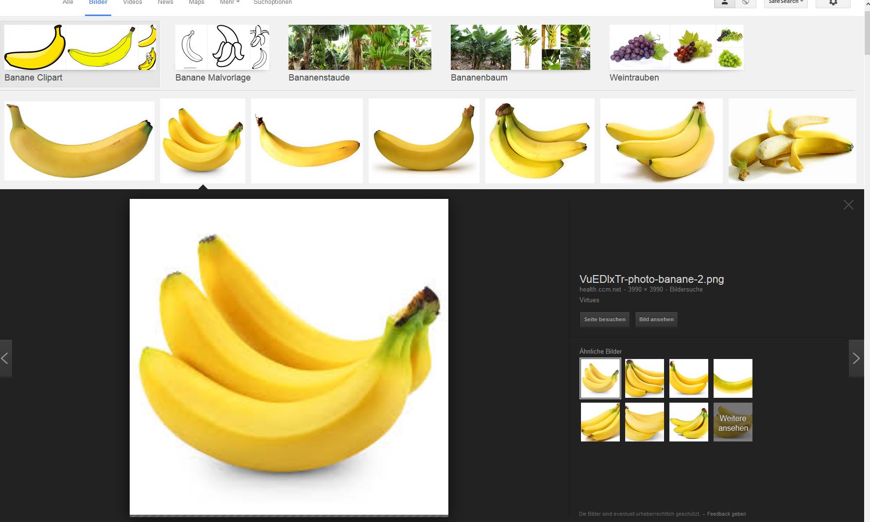 Wenn ich auf meinem Arbeits-Notebook (Windows 8) im Firefox mit Goolge nach einem Bild suche (z.B. "Banane"), erscheint zunächst die Übersicht der gefundenen Bilder. (Bild 1)