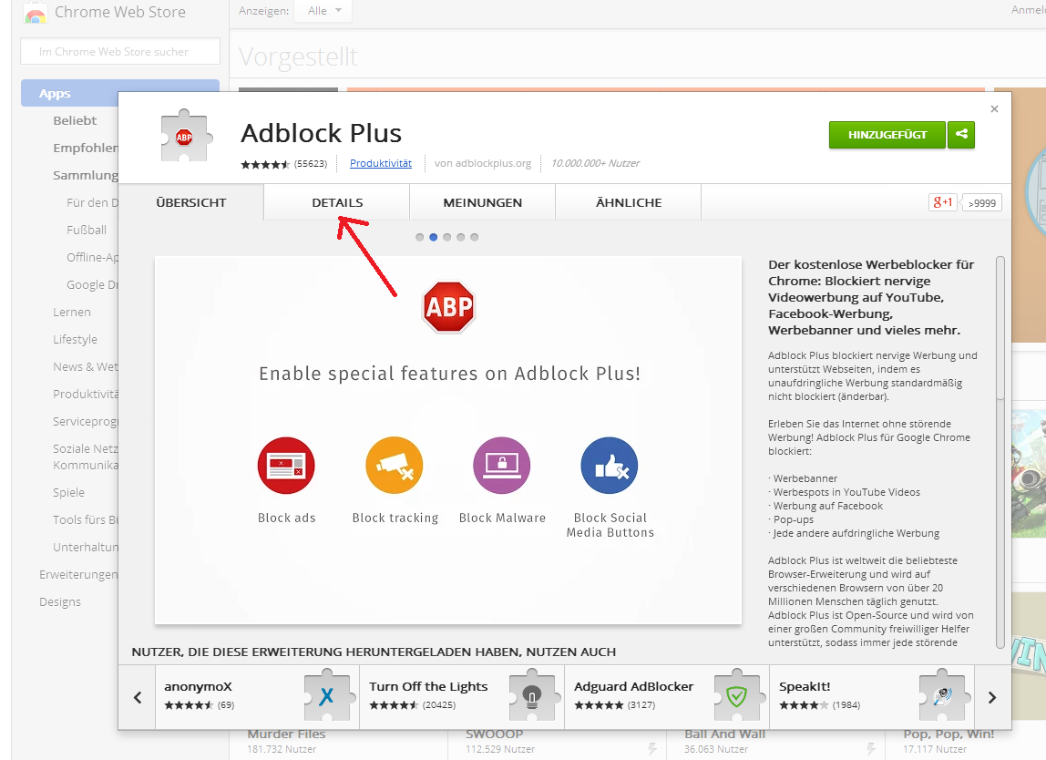 Wenn ich den Chrome Web Store besuche und bei eine Erweiterung
