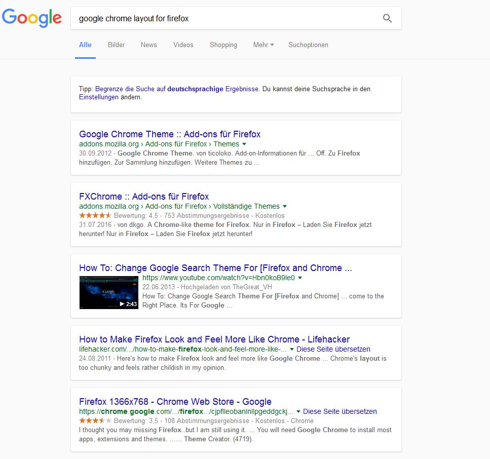seit kurzem hat sich bei Google das Layout für die Suchergenisse bei mir geändert aber nur bei Firefox.