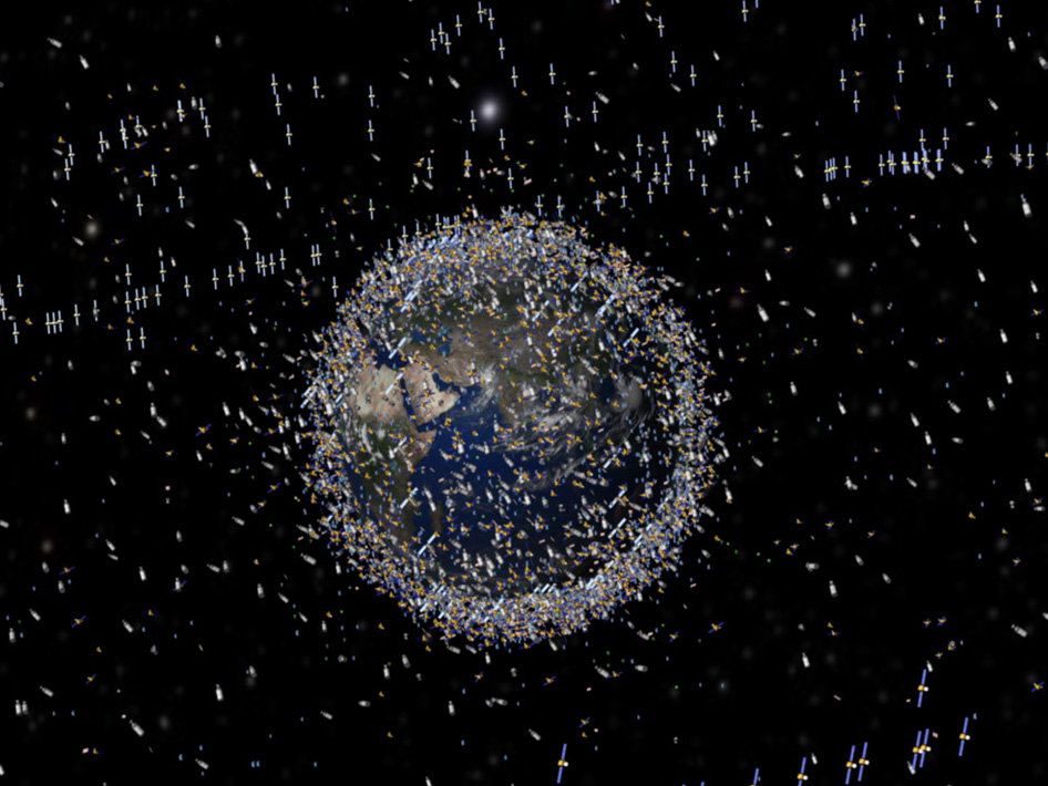 Na, wenn man Satelliten in der Größe von Deutschland in den Himmel schießt, könnte das Bild stimmen. Da die aber glücklicherweise größtenteils kleiner wie ein durchschnittliches Auto sind ist da oben noch mehr als genug Platz. Es gibt etwa 1.1 Mrd Autos auf der Welt.