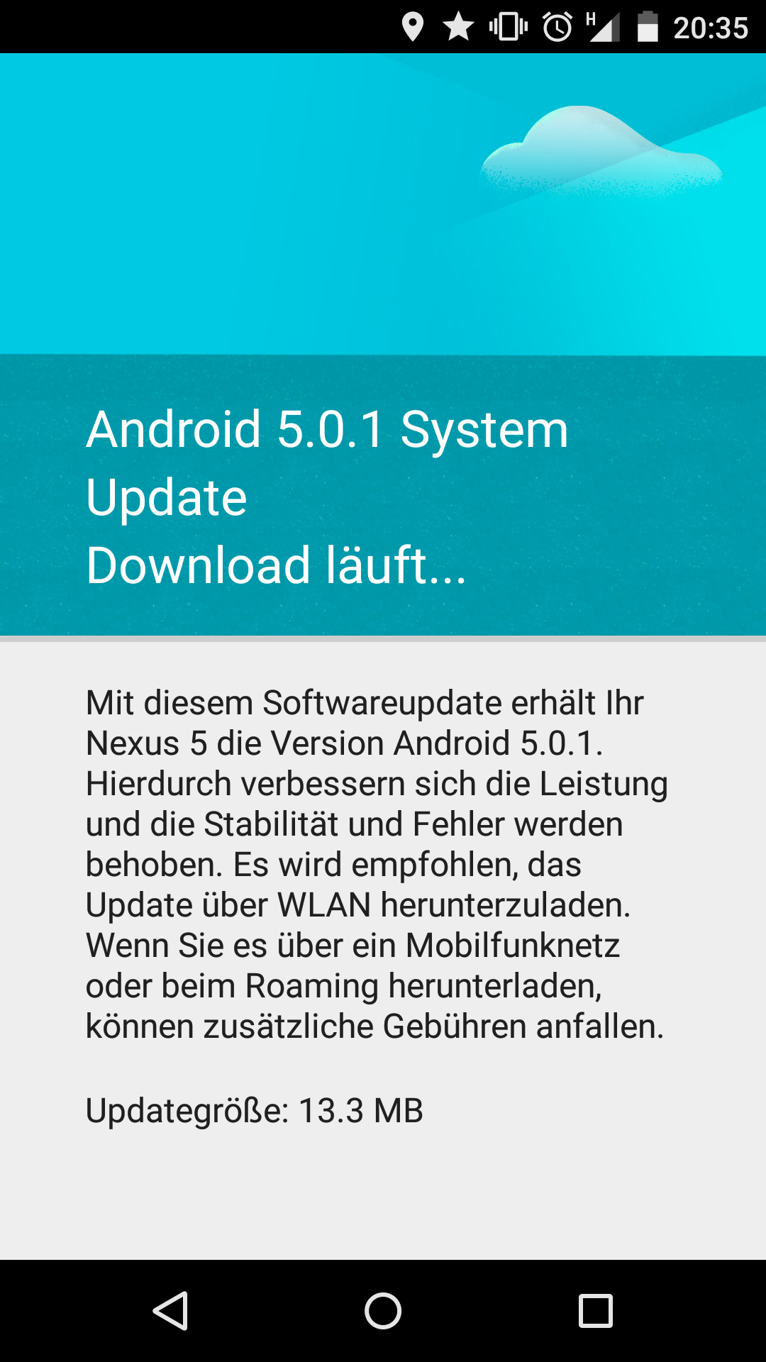 Haben sie es endlich auch mal für das Nexus 5 gebracht. Hat ja doch ein wenig gedauert. Mal sehen, wann es bei mir ankommt und was es bringt. Viel soll das Update auf den anderen Geräten ja nicht adressiert haben, was ich persönlich schade finde, da Android 5.0 auf meinem Nexus 5 immer noch massive Probleme macht obwohl ich es zwischenzeitlich nochmal neu sauber per Factory Image geflasht hatte.