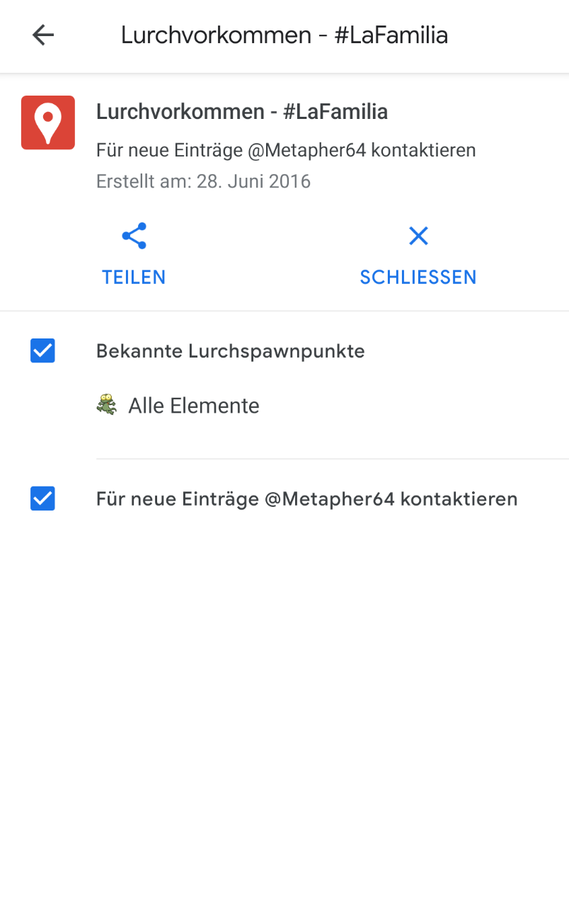 Google maps: Orte von Link wieder entfernen