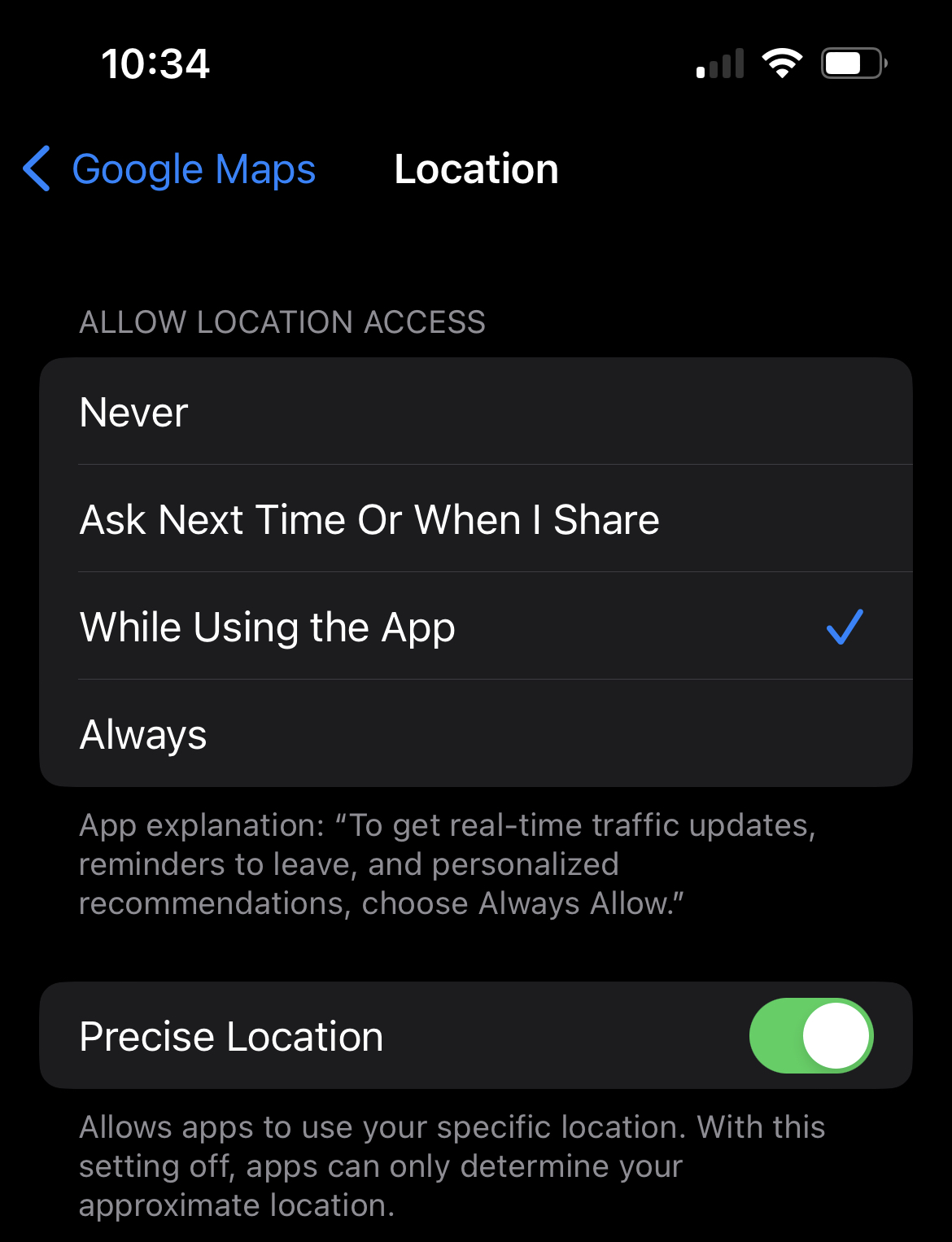 ich habe ein iPhone 7 und teile mit Google Maps meinen Standort dauerhaft.