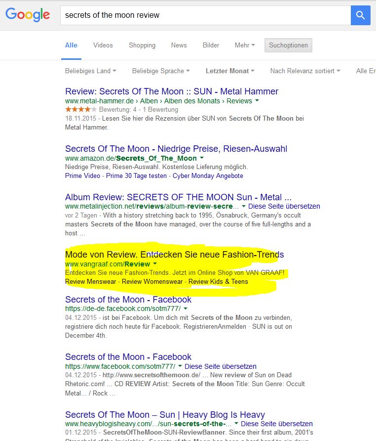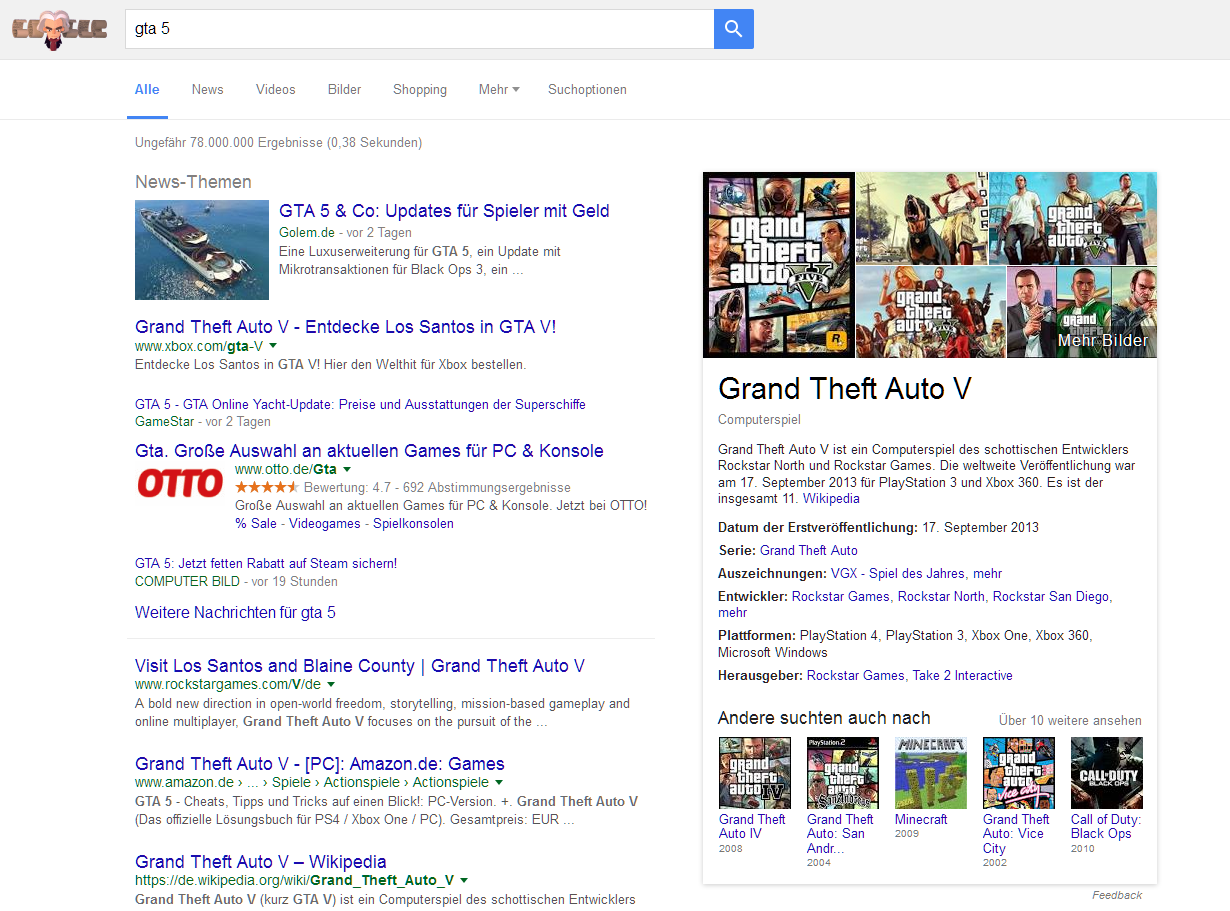 Nun stelle ich seit circa drei Wochen fest, dass Google unter die Treffer selbst (also nicht so ohne weiteres erkennbar) Werbung mischt (Conrad, amazon ...).