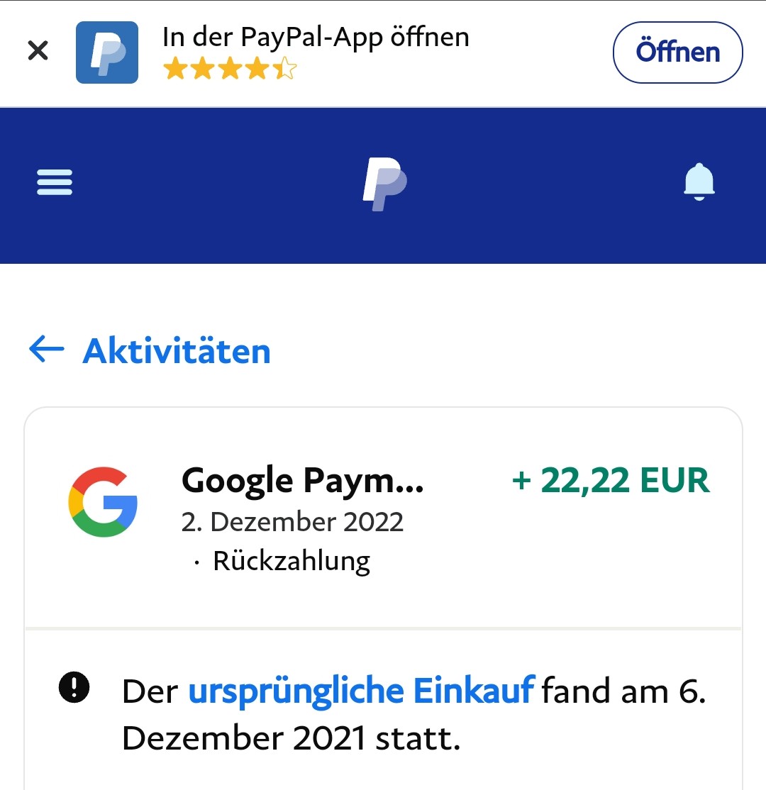 Ich habe es Ende letzten Jahres bereits auf PP zurückerstattet bekommennighteeeeey schrieb::O