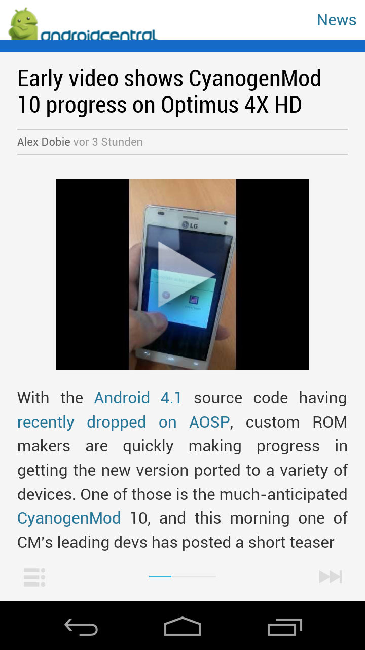EDIT: Hat jemand von euch Google Currents ausprobiert? Finde das ist klasse aufgemacht. Nicht nur das man dort seine Favorisierten Webseiten einfügen kann um sie schnell auf einem Blick zu haben, sie werden auch für das Handy Optimal (Schrift, Absätze, inklusive Bilder usw.) Formatiert zum lesen wie bei einem E-Book Reader. Hab da grade Computerbase und das Forum hinzugefügt das sieht gut aus