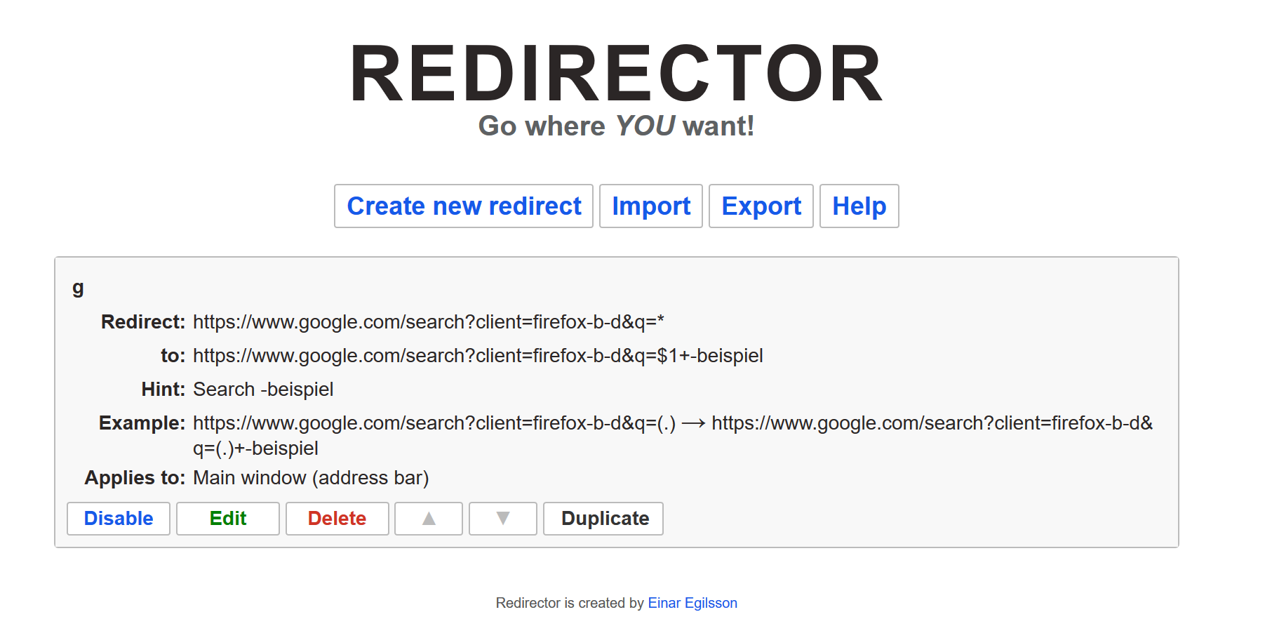 Kennt jemand eine Möglichkeit die Adresszeile zu verändern und so beispielsweise "-test" oder "-site:affiliatewebseite.com" dauerhaft der Googlesuche hinzuzufügen?