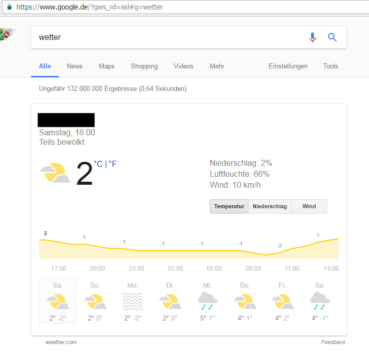 wenn ich auf meinem Desktop PC in firefox in google einfach nur "wetter" eingebe, zeigt es mir normalerweise als erstes Ergebniss eine eigens von google erstellte Wettervorschau für meinen standort neben weiteren Suchergebnissen. Leider ist diese Anzeige im Firefox browser seit kurzem komplett verschwunden. Wenn ich versuche nach diesem problem zu suchen finde ich nur themen bezüglich Wetteranzeige auf android geräten.