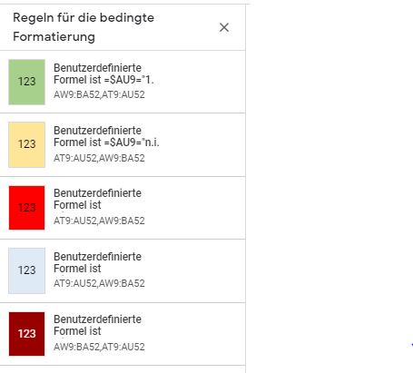 In der ersten Saison habe ich die bedingte Formatierung hinbekommen.