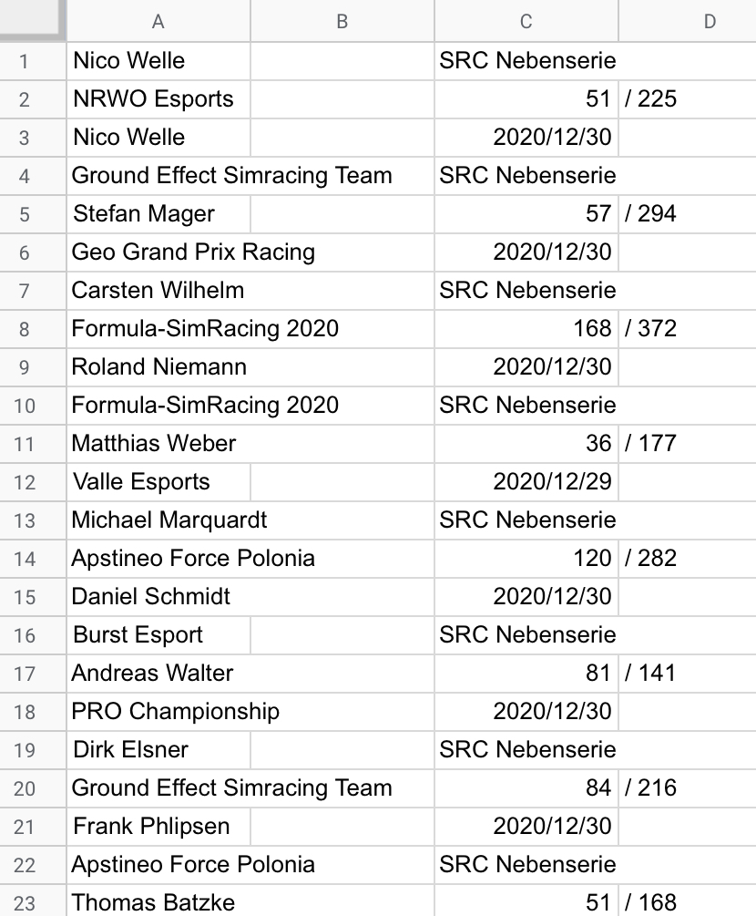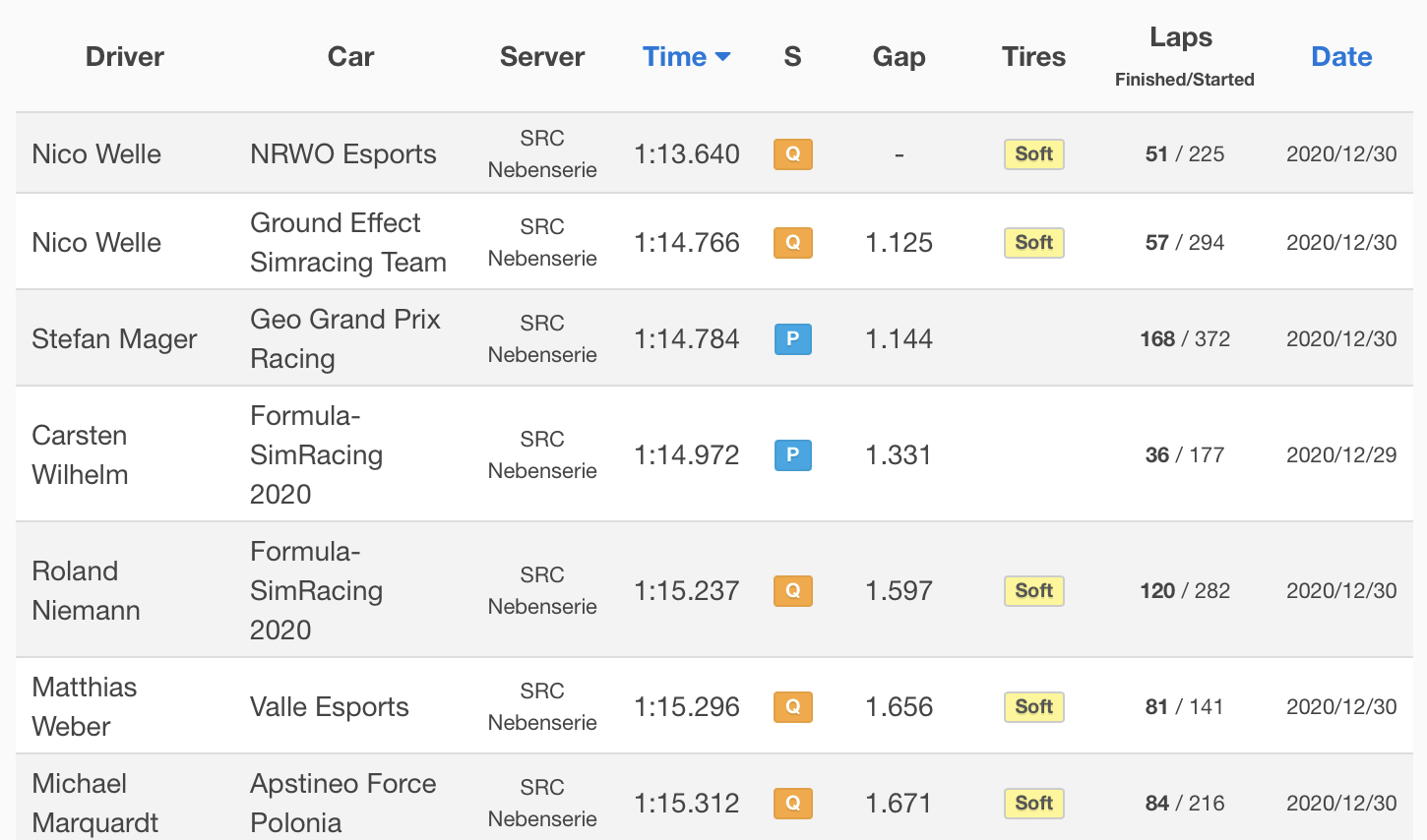 Diese Webseite ist nicht anderes, als eine Bestenliste, eines SimRacing Servers, für die Besten Rundenzeiten, allerdings haben sich dort über die Jahre viele Zeiten angesammelt und mich interessieren nicht die aus den Vorjahren sondern eigentlich nur die aus diesem Jahr, dass will ich mir im Anschluss mittels Google Tabellen raus filtern.