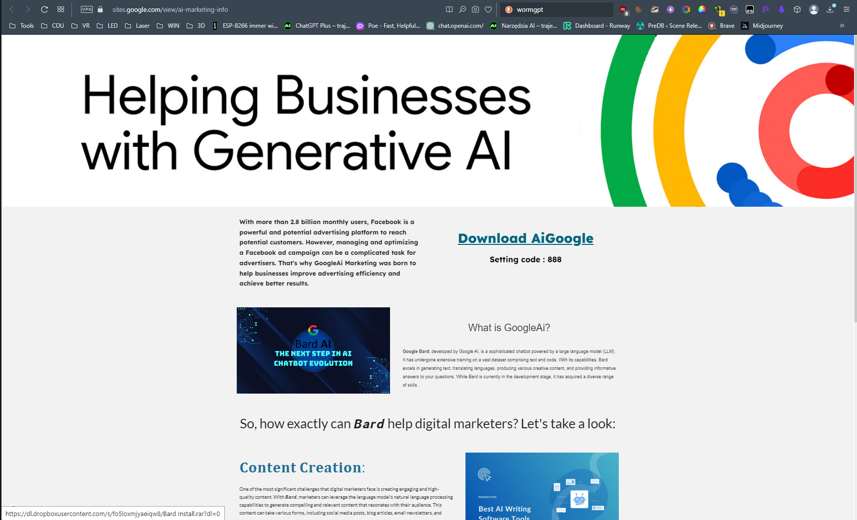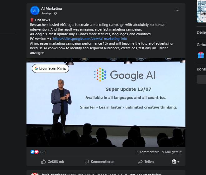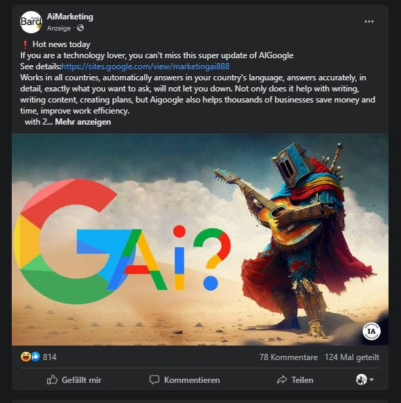 Google_Bard_AI.rar auf Facebook seit drei Tagen auf Fake Seiten.. wer ist der Dumme hier?