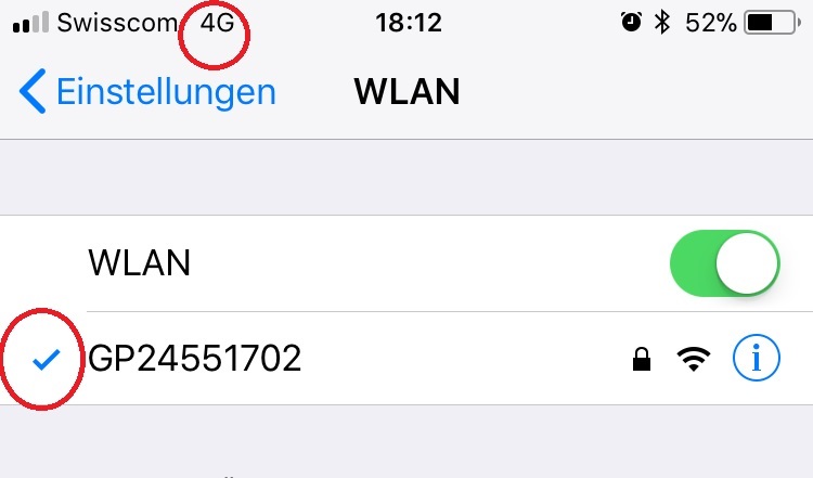 Aber macht die GoPro quasi ein eigenes WLAN oder wie läuft das? Und warum habe ich dann auf meinem Iphone oben noch 4G (Mobilfunk) aktiv, obschon ich mit der GoPro über WLAN verbunden bin? Müsste dort nicht das WLAN-Symbol erscheinen?