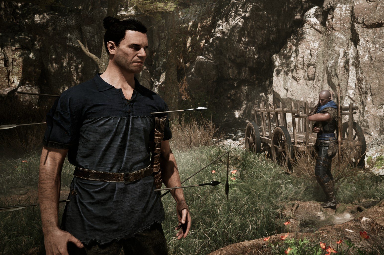 Sie haben mittlerweile ja die offiziellen Minimum-Specs eingetragen: Ryzen 1600 + RTX 2070. Bin mit Ryzen 5600 + 3060 unterwegs. In 1080p und Auflösungsskalierung 100% (TSR) sind da auch mit allem auf low etwa keine stabilen 60 fps drin. Der Wasserfall anfangs geht sogar deutlich tiefer. Entsprechend sieht es natürlich in höheren Einstellungen aus. Dabei ist die Optik jetzt kein Megakracher. Die Landschaft ist ganz hübsch. Der Spielercharakter könnte aber aus einem Titel von vor zehn Jahren stammen, auch in Sachen Laufanimationen.