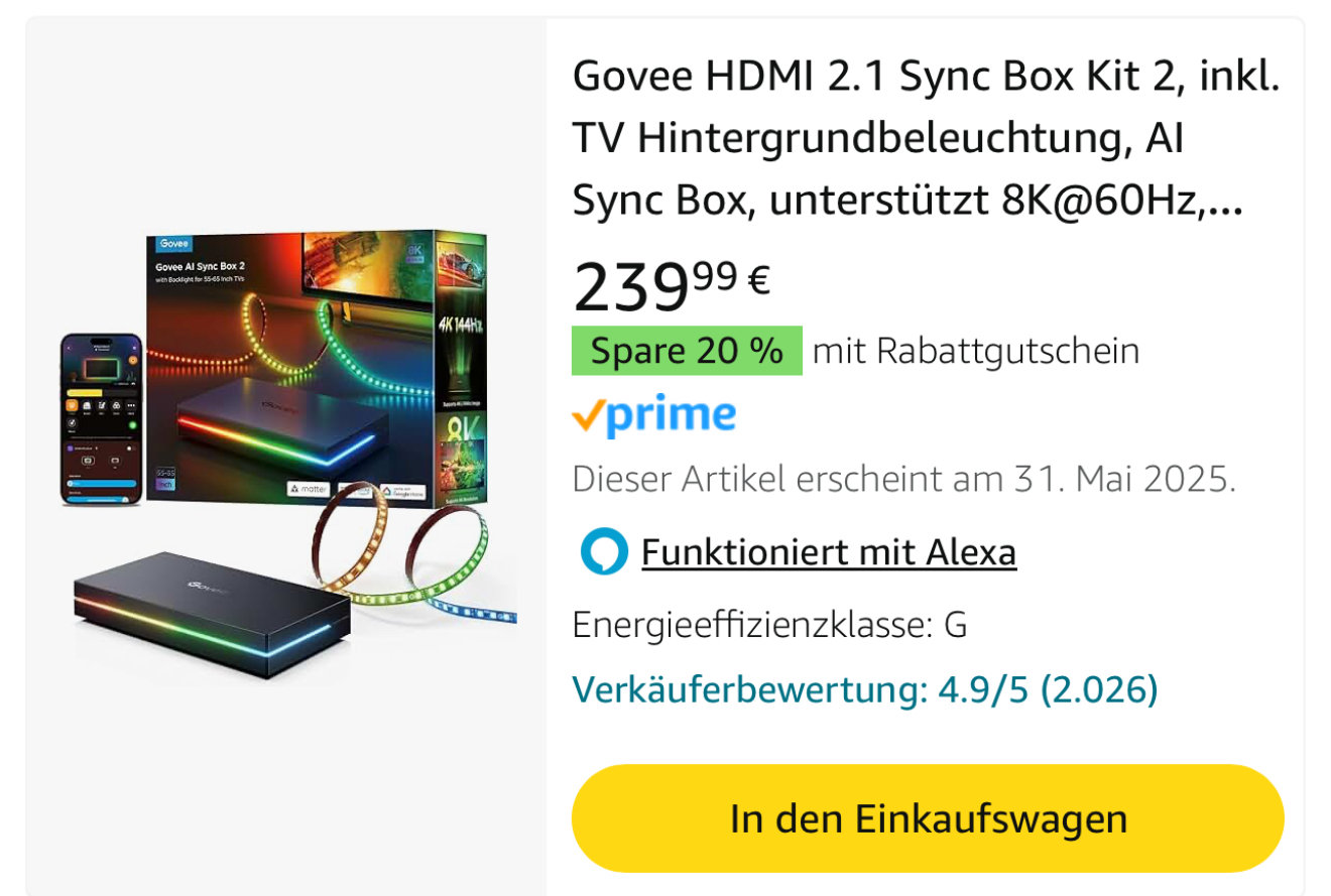 Also wenn da alles dabei ist, also die Box und Led-Streifen, dann ist das vertretbar vom Preis her.