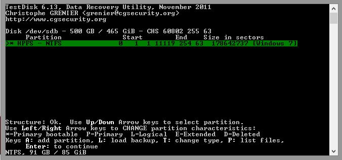 Ich habe mich dann mal im mir möglichen Maße schlau gemacht und das Programm Testdisk (6.13) ausgeführt, die Festplatte schaut dort momentan so aus: