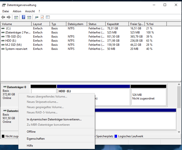Ich habe das Bios heute frisch geflasht, weil das Mainboard am Anfang gar nicht auf meine SSD mit Windows 10 Pro reagiert hat. (Habe mir neuen PC zusammen gebaut, läuft auch alles wunderbar). Würde gerne auf Windows 11 updaten, allerdings wird mir gesagt beim Windows 11 Check, das Secure Boot nicht aktiviert ist. Also wieder ab ins Bios und Problem erkannt. Hier wird nicht auf UEFI sondern auf LEGACY gebootet. Beim einschalten von UEFI wird mein Windows nicht erkannt. In der Datenträgerverwaltung steht nur das ich zu MBR konvertieren kann (siehe Bild) was ja dann heißt dass es schon GPT = UEFI ist.