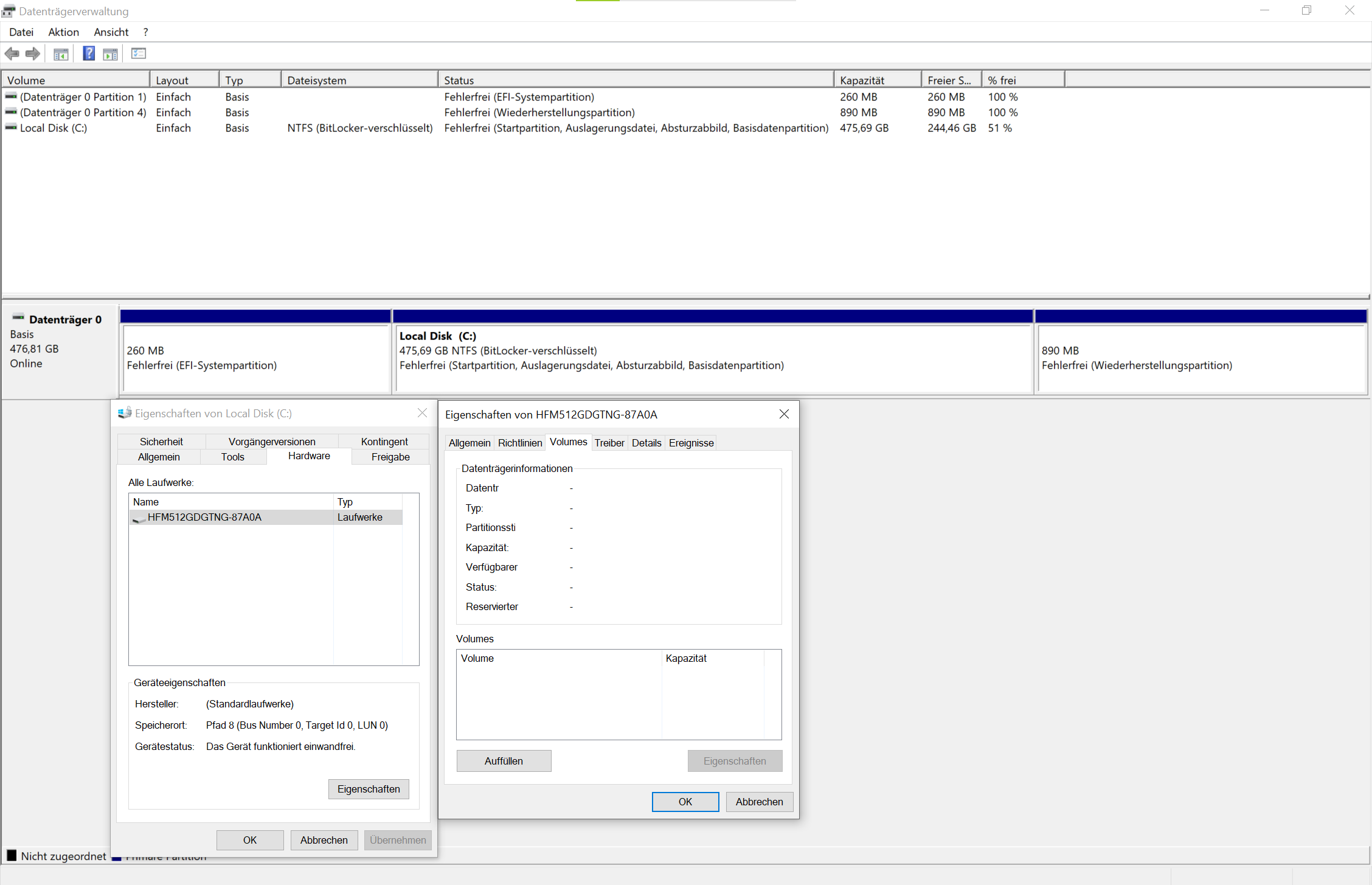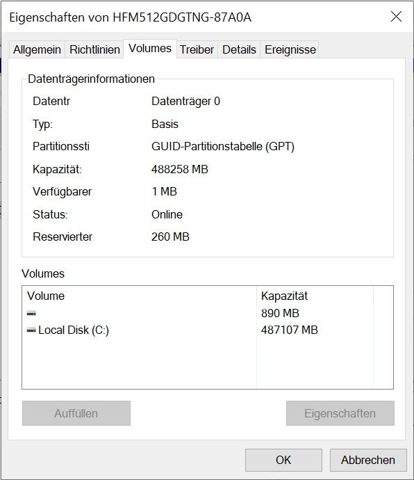 Man sieht auch schon an seiner Datenträgerverwaltung, dass ein Windows im BIOS / MBR Modus installiert ist.