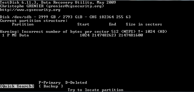 -per TestDisk wurde die Partitionstabelle neu geschrieben.