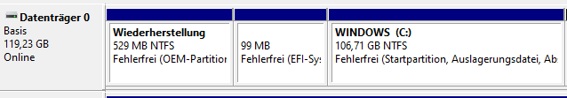 "Sie sollten diese Partition direkt hinter der Windows-Partition platzieren. Dadurch kann Windows die Partition zu einem späteren Zeitpunkt ändern und erneut erstellen, wenn für künftige Updates ein größeres Wiederherstellungsimage erforderlich ist."Nickel schrieb:Windows legt die Recovery als erste Partition an, so wie es sein sollte.