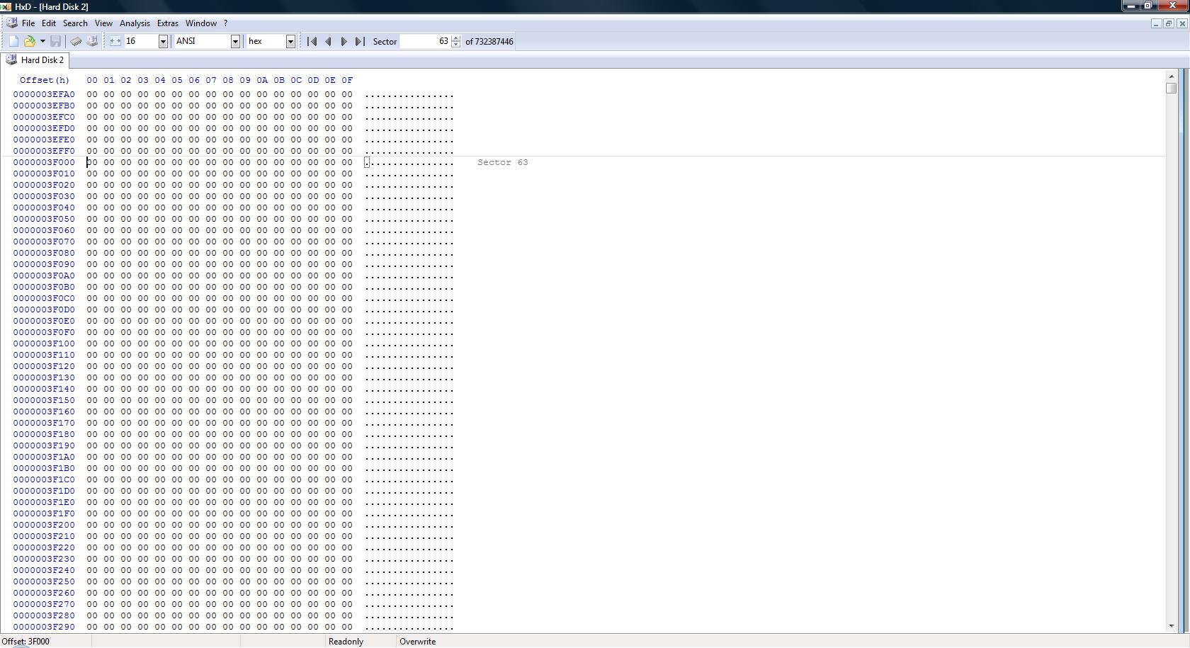 also sollte auf Sector 63 ebenfalls ein NTFS-Header zu finden sein