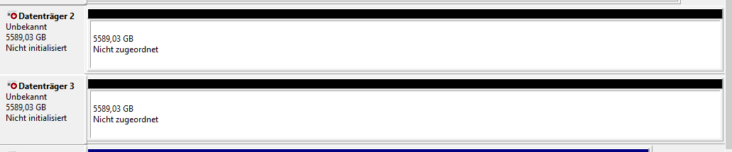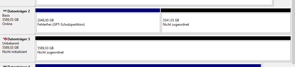 Wenn ich die mit "MBR" Initialisiere, kriege ich eine 2TB Festplatte mit RAW raus. auf den Rest habe ich keinen Zugriff