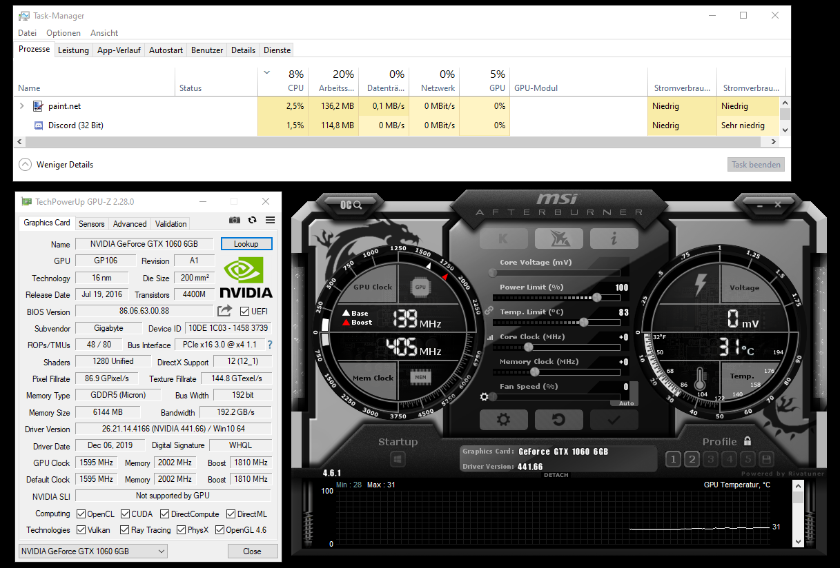 GPU: GIGABYTE Grafikkarte NVIDIA GeForce® GTX 1060 G1 Gaming 6GB