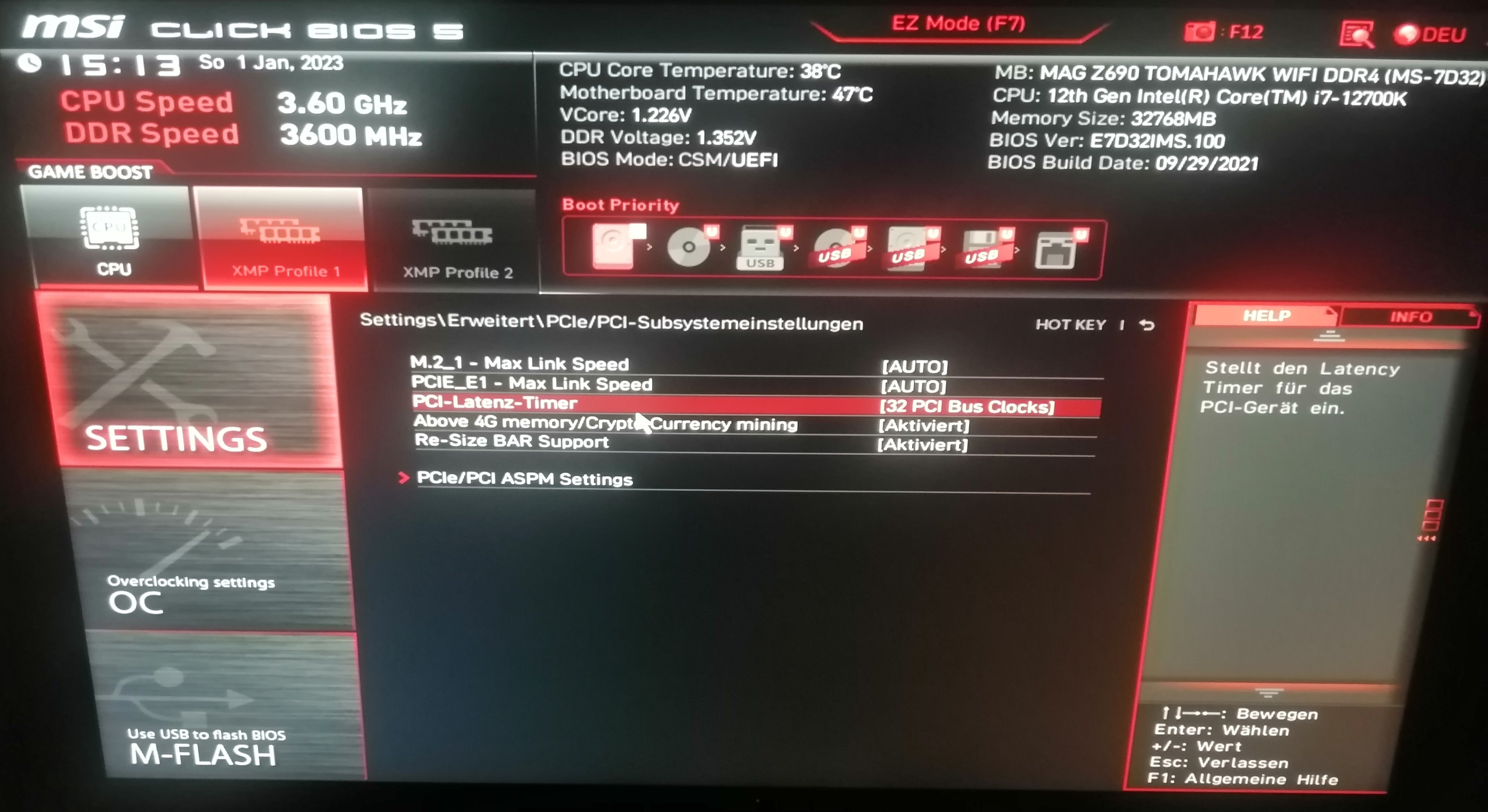 - Mainboard: MSI MAG Z690 TOMAHAWK WIFI DDR4 (MS-7D32)
